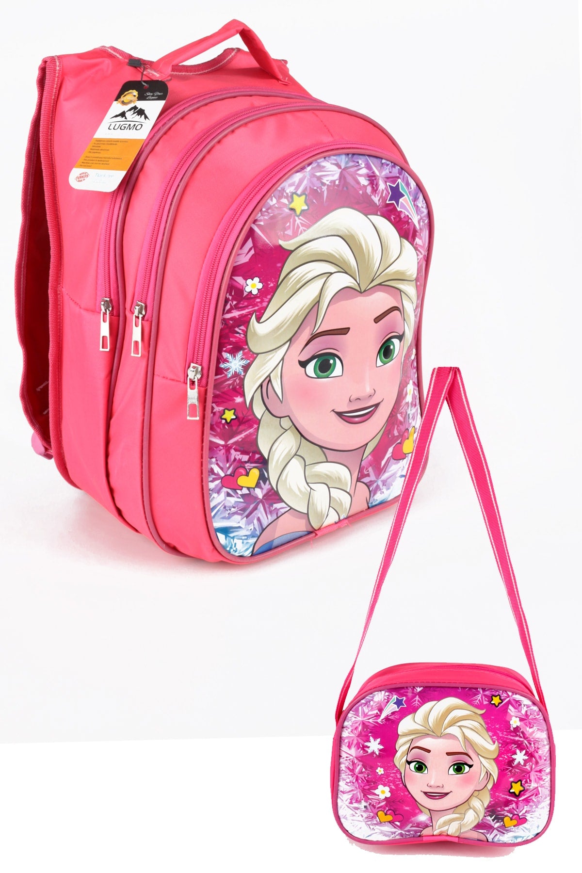 Middle School Primary School Bag And Lunch Box 3 Pockets Pad Elsa Head Pink