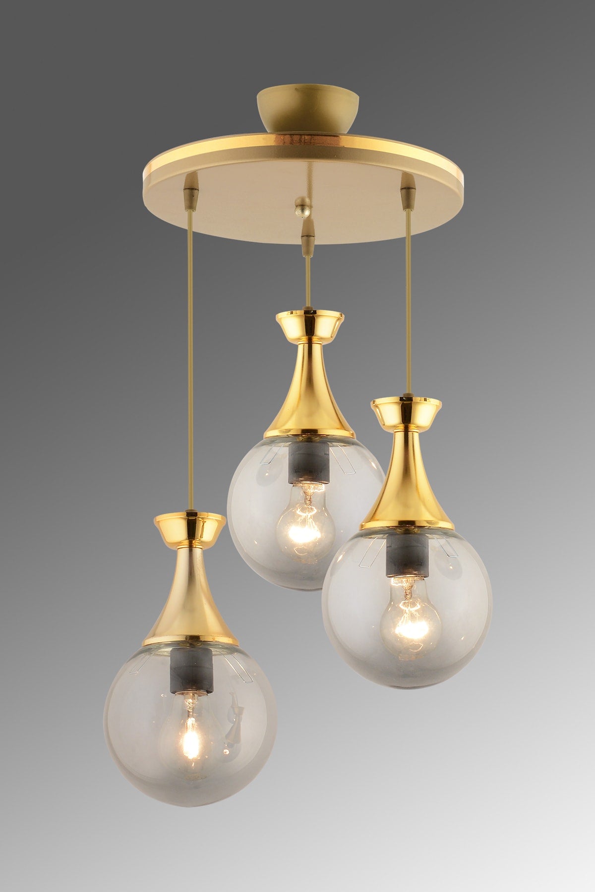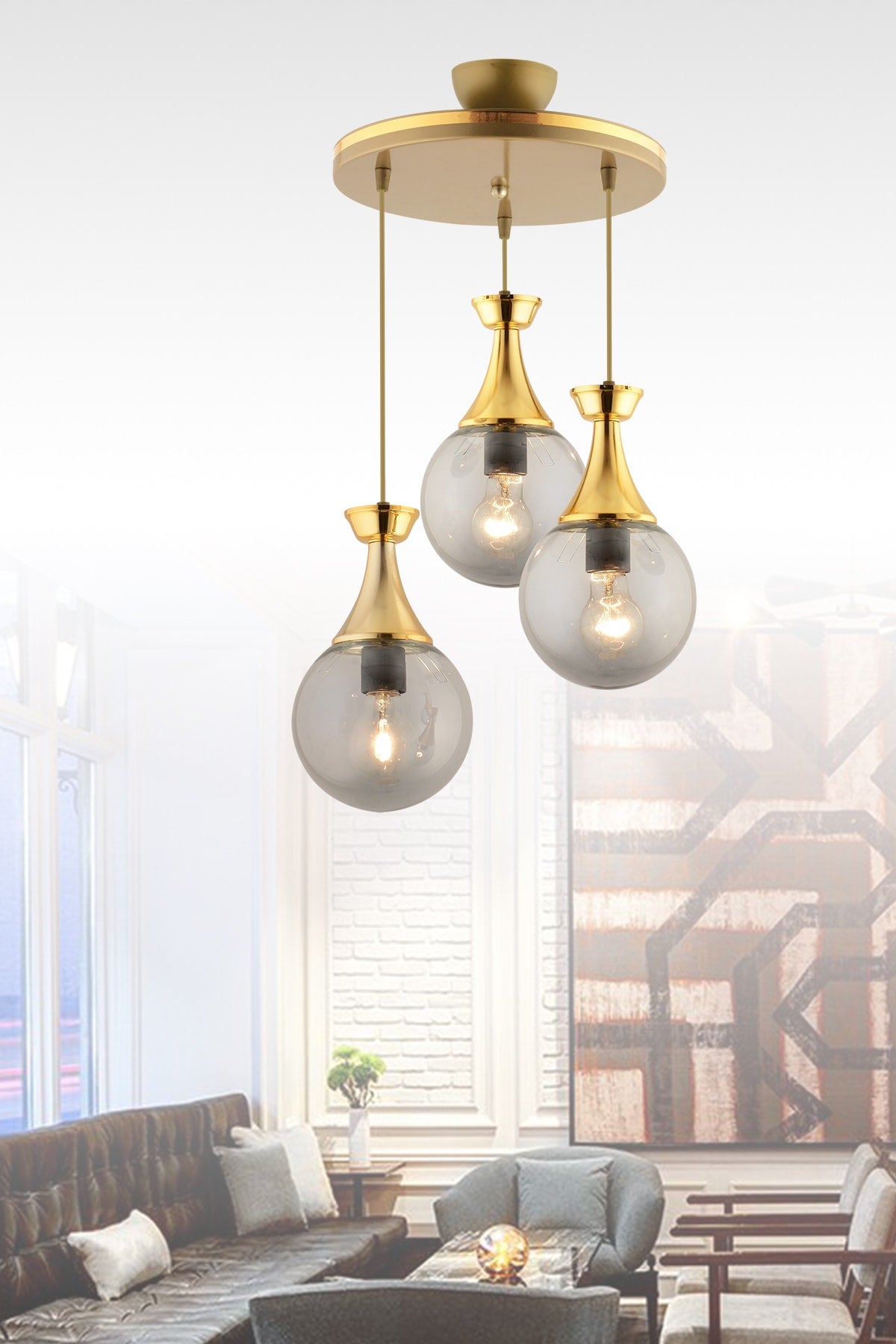 Minel 3-Piece Tray Pendant Lamp Antiqued Gold Gilded Glop Glass Chandelier