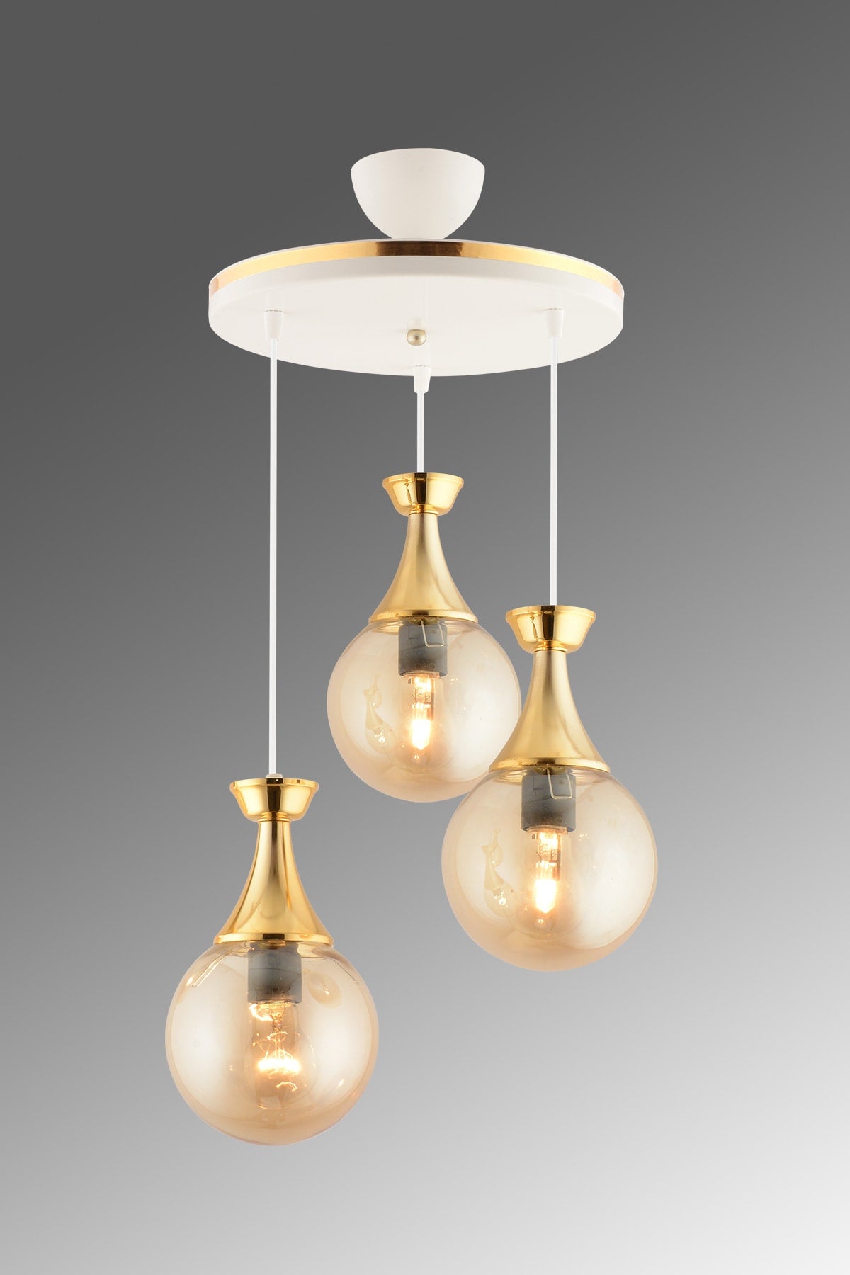 Minel 3-Piece Tray White To Gold Bal Glop Glass Living Room Chandelier