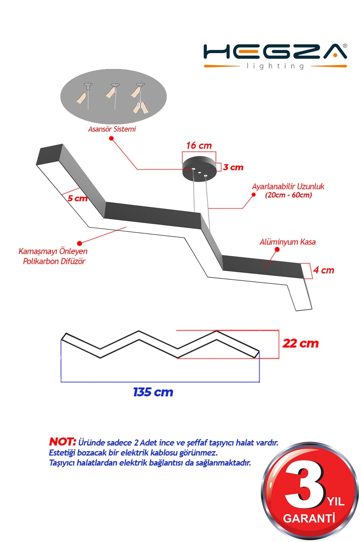 Modern Led Chandelier With Zigzag (Black Case, Daylight) Led, Living Room, Kitchen, Living Bedroom, Pendant Lamp