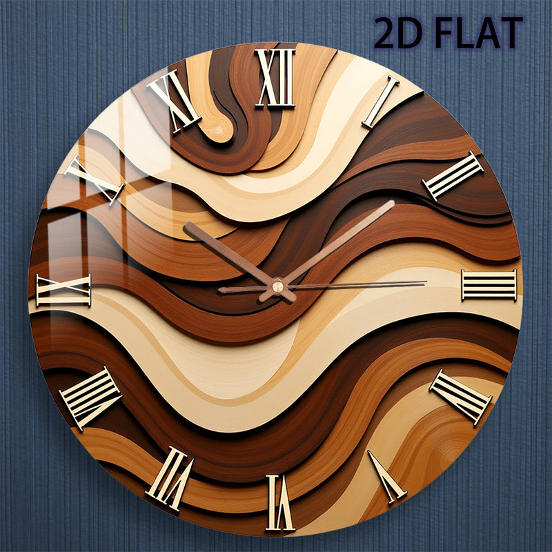 Modern Minimalist 12-inch Round Wall Clock - Silent Non-Ticking Quartz Movement, Brown Beige Marbled Pattern Face with Roman Numerals, Tempered Frame - Battery-Powered (AA Not Included) - Elegant Modern Design for Living Room, Bedroom