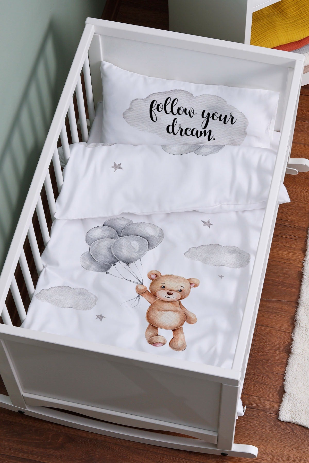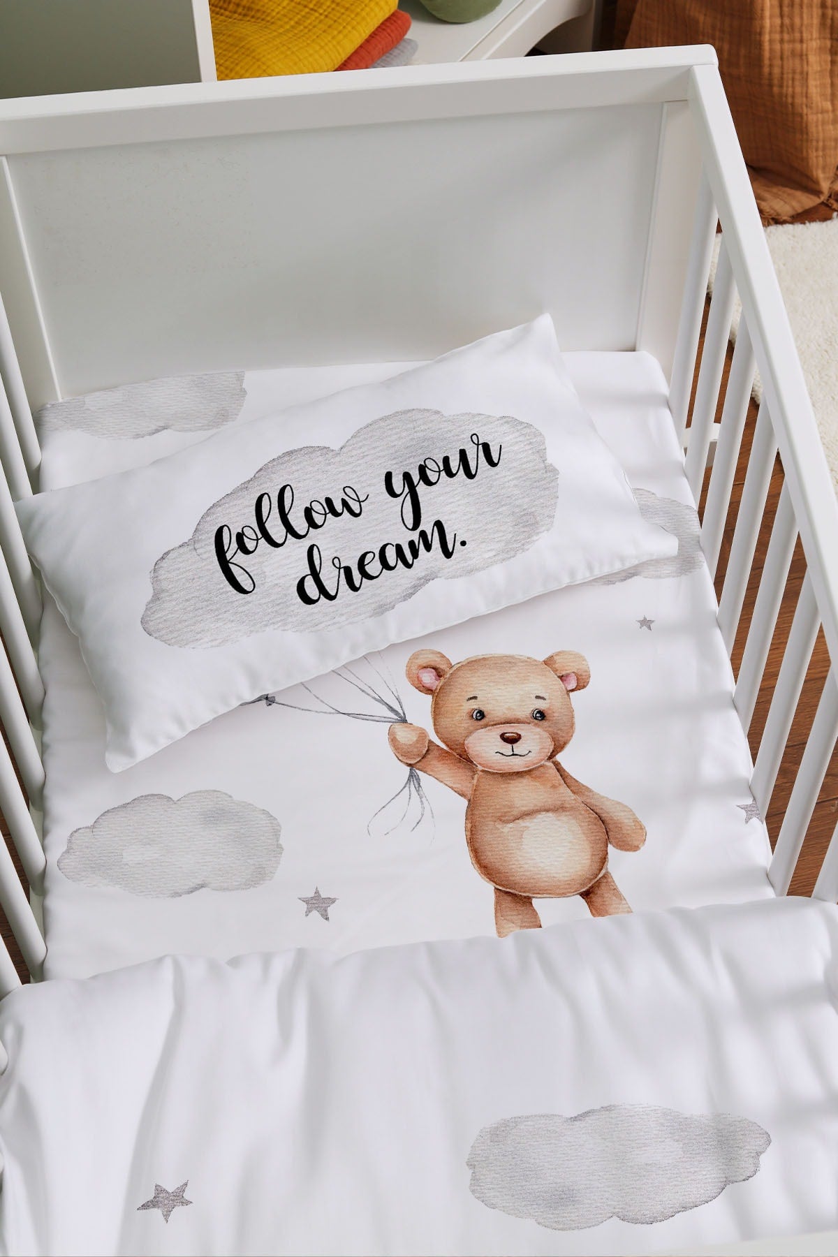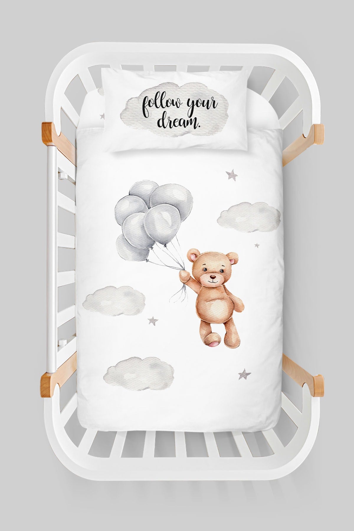 Mother'S Side Crib Duvet Cover Set (60X100) - Iconic Series - Brown Bear Swinging In A Star Pink