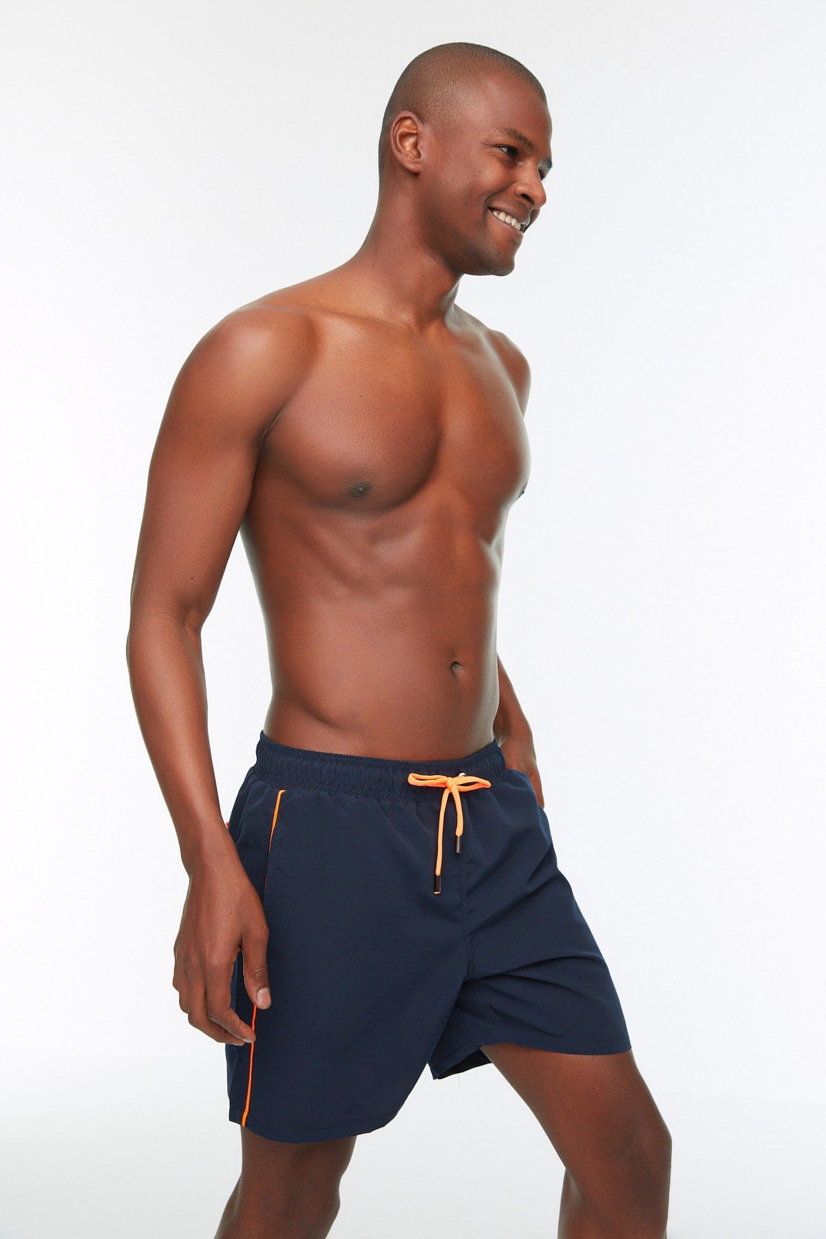 Navy Blue Men'S Garnish Standard Length Swimwear Sea Shorts Tmnss20Ds0022