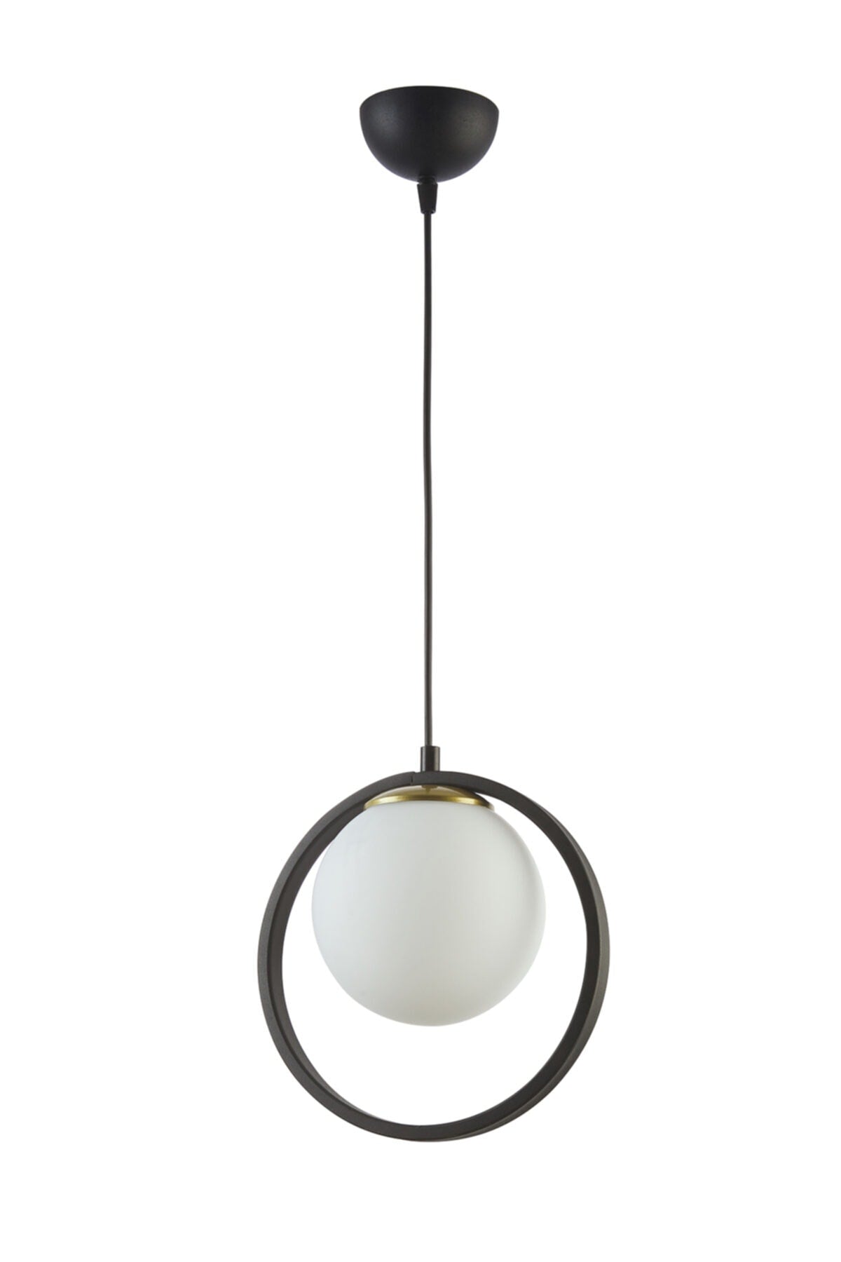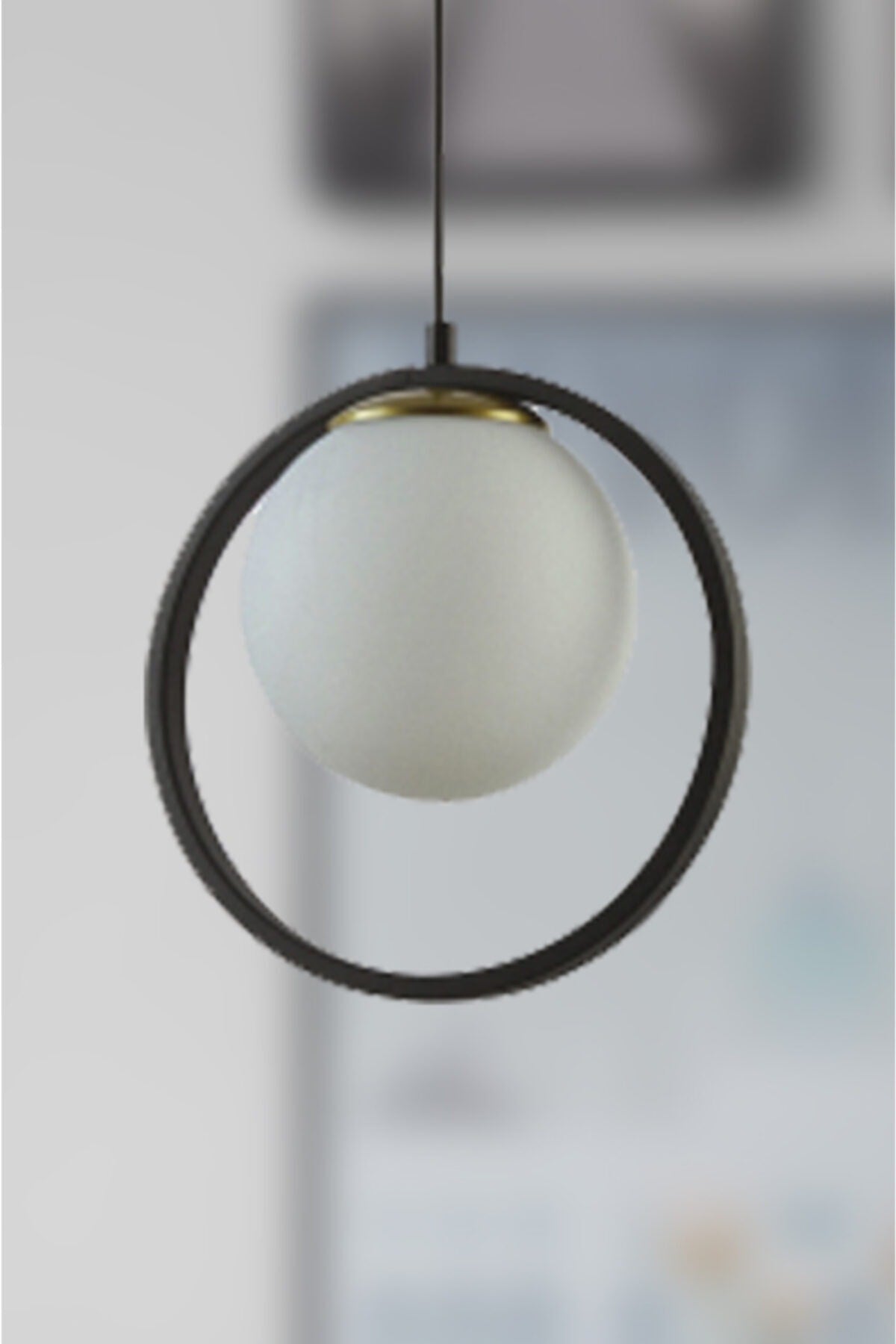 Nina Modern Metal Black Color Ring Closed White Glass Single Chandelier