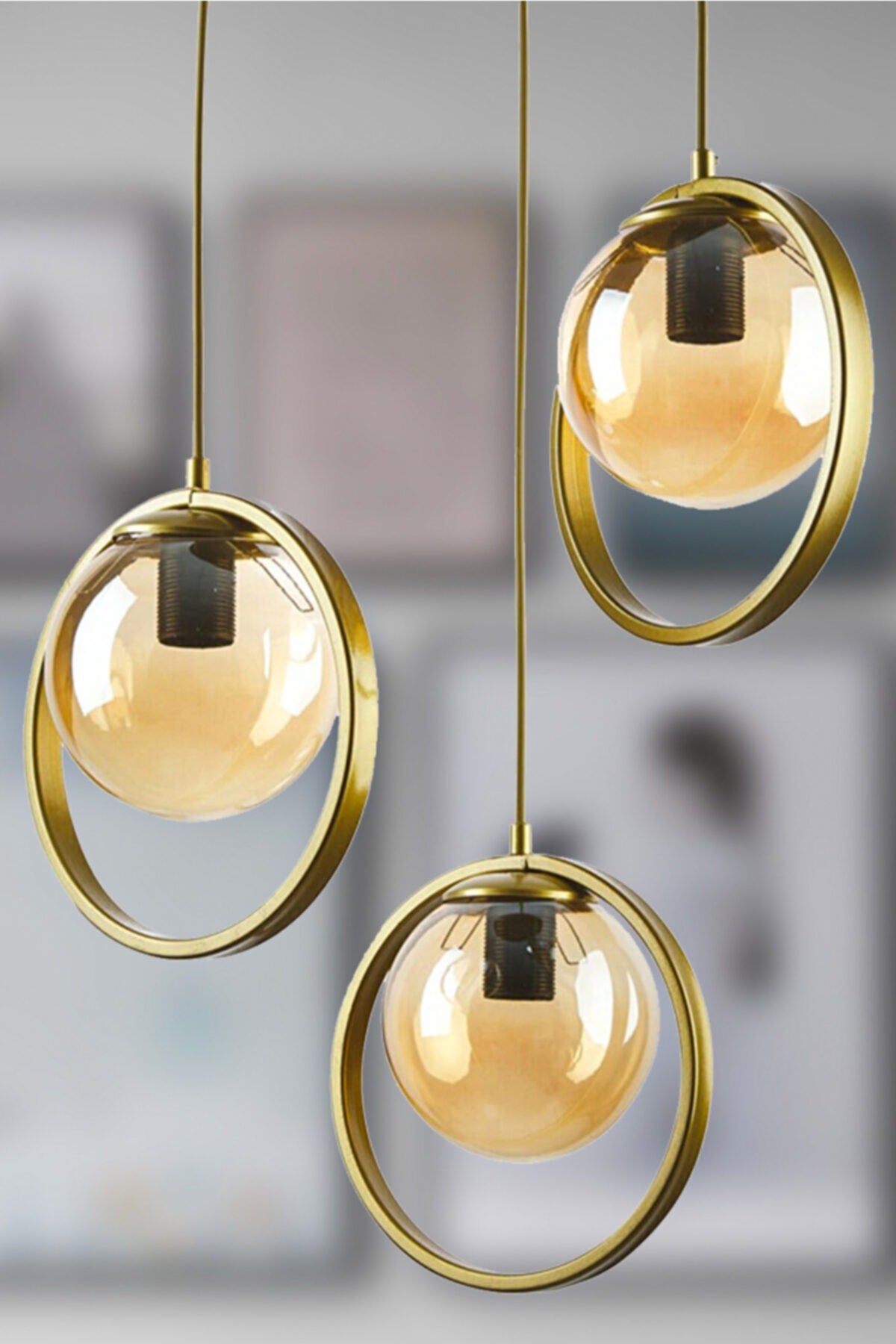 Nina Modern Metal Gold Color Ring Closed Honey Glass Pendant Lamp Living Room - Kitchen - Bedroom 3-Piece Chandelier