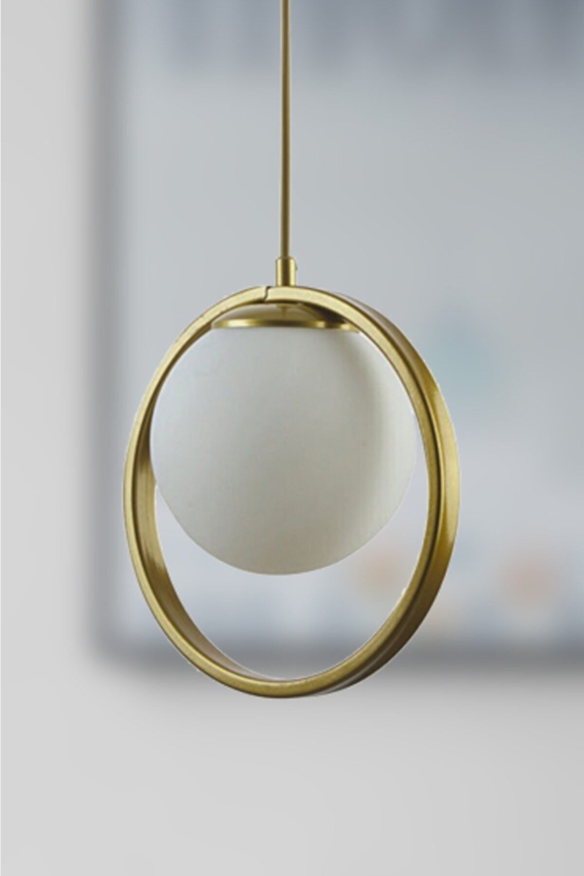 Nina Modern Metal Gold Color Ring Closed White Glass Single Chandelier