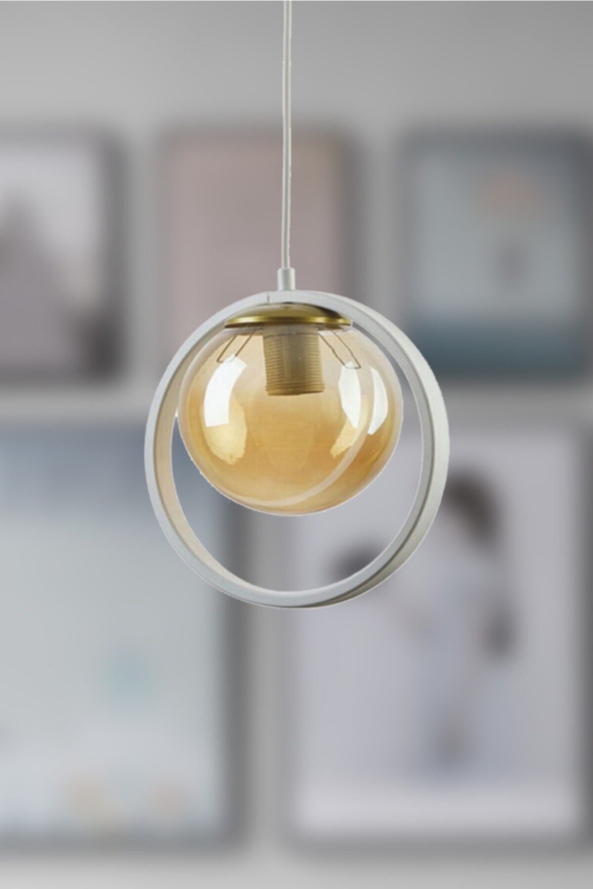 Nina Modern Metal White Color Ring Closed Honey Glass Single Chandelier