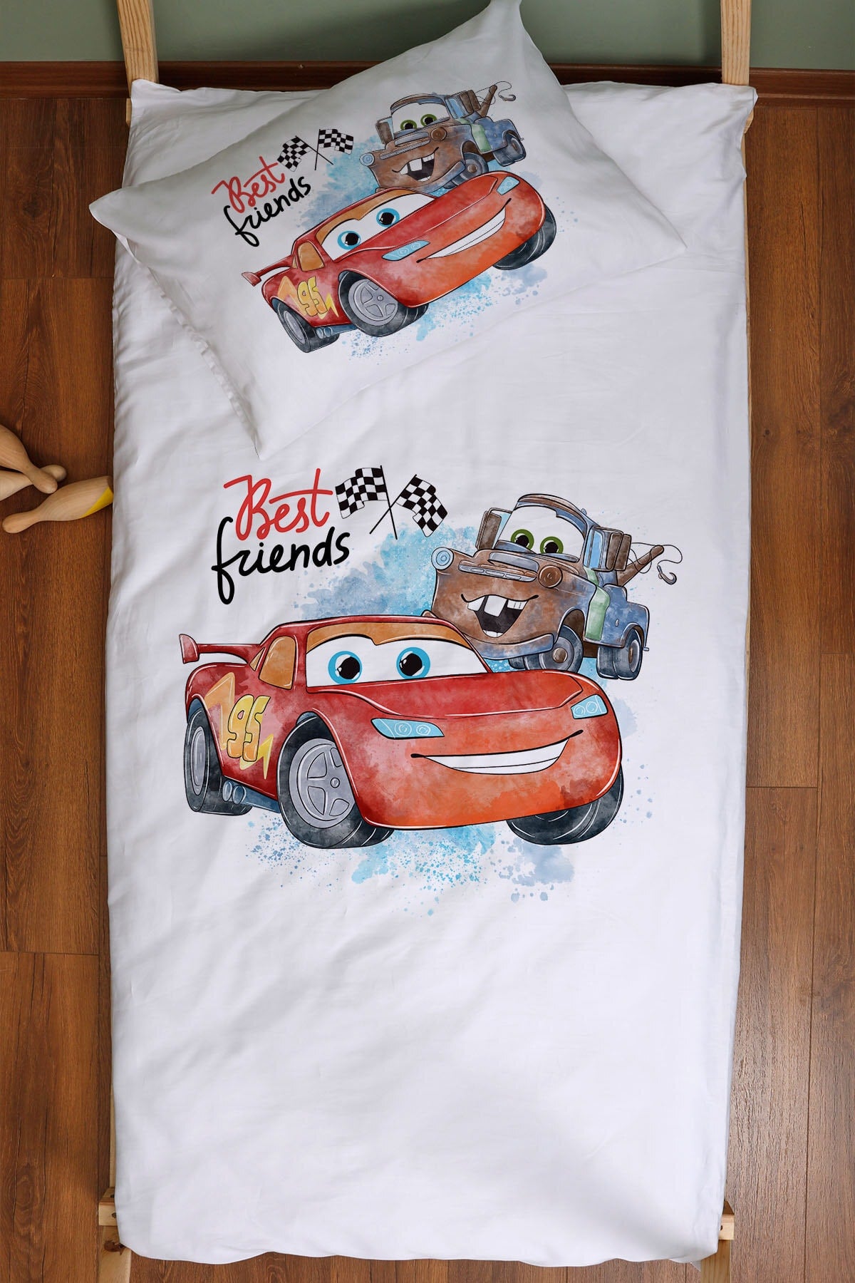 Organic Montessori Duvet Cover Set (100X200) - Cartoon Series - Şimşek Mcqueen And Attractive Mater