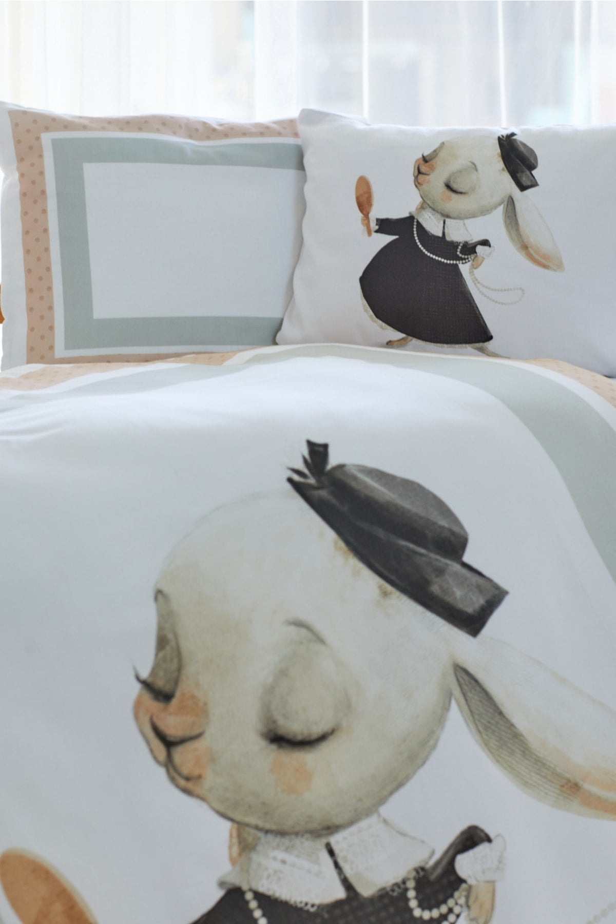 Organic Printed Cotton Satin Baby Duvet Cover Set - Pink Rabbit Theme