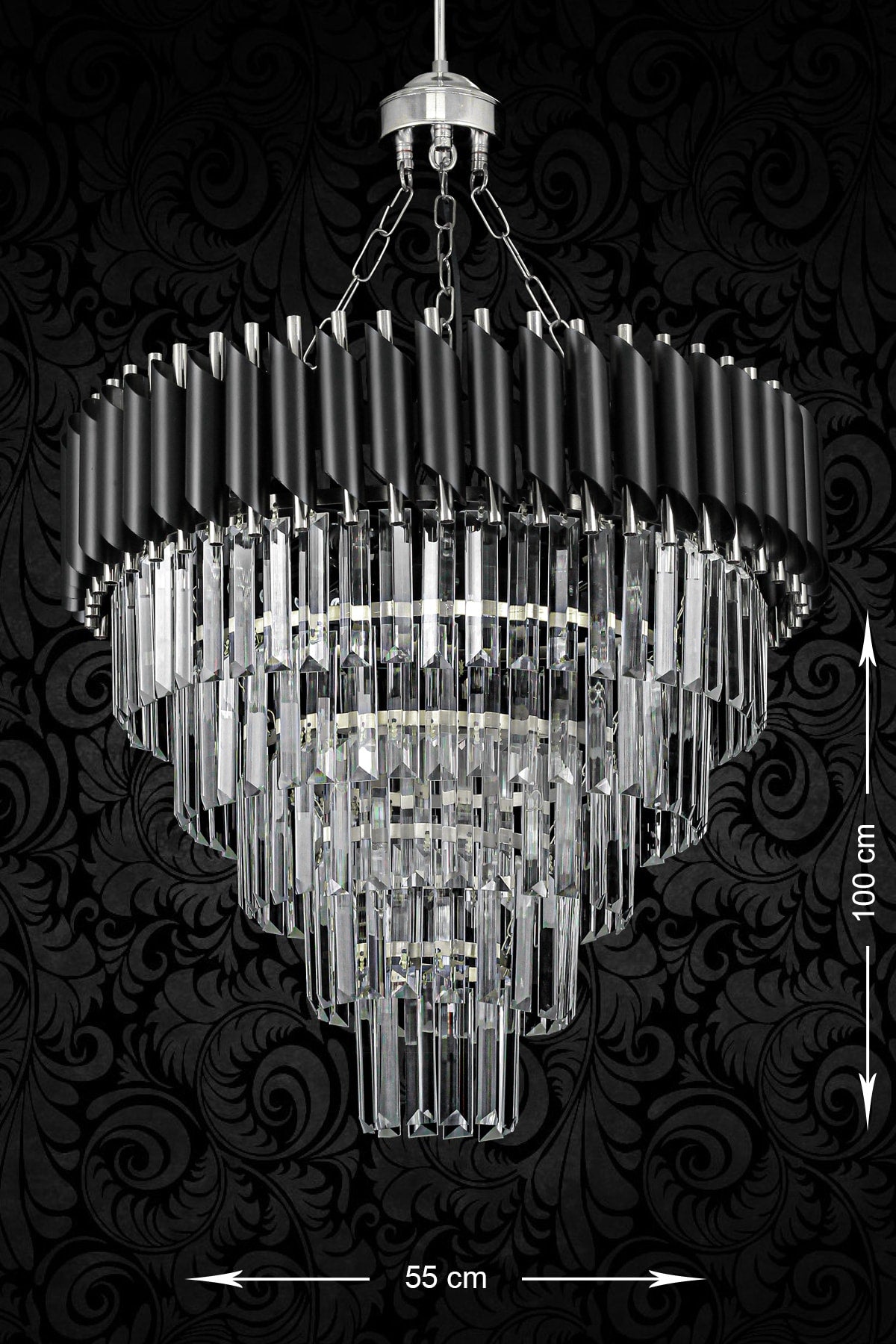 Palmira 55 Cm Crystal Stone Luxury Chandelier Set Of 5 - (Black-Chrome)