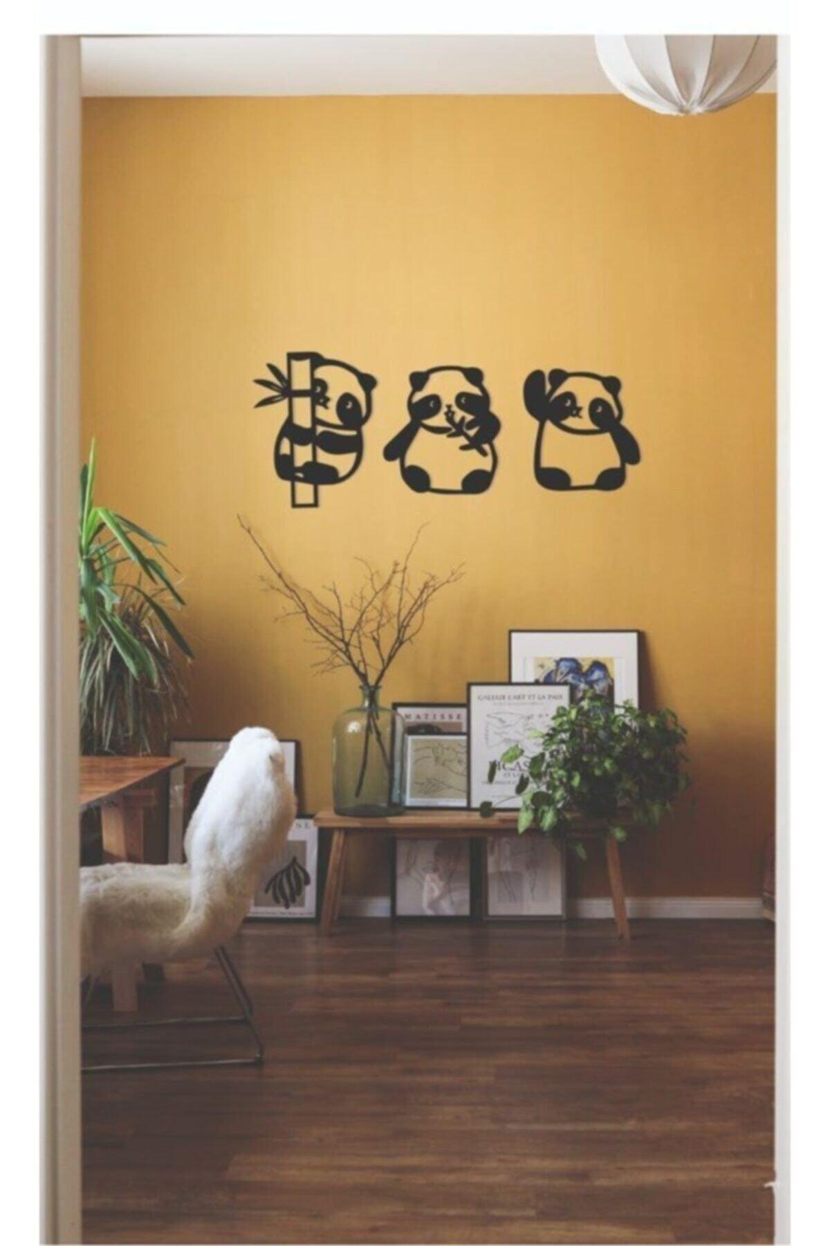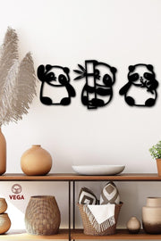 Panda 3 decorazioni da parete Black Wood