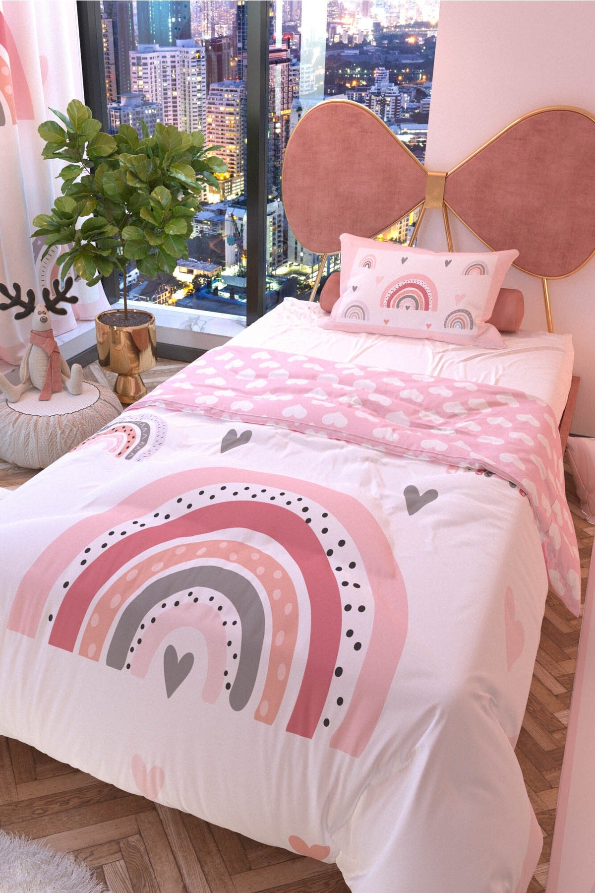 Pastel Rainbow Double Sided Kids Duvet Cover Set Polycotton