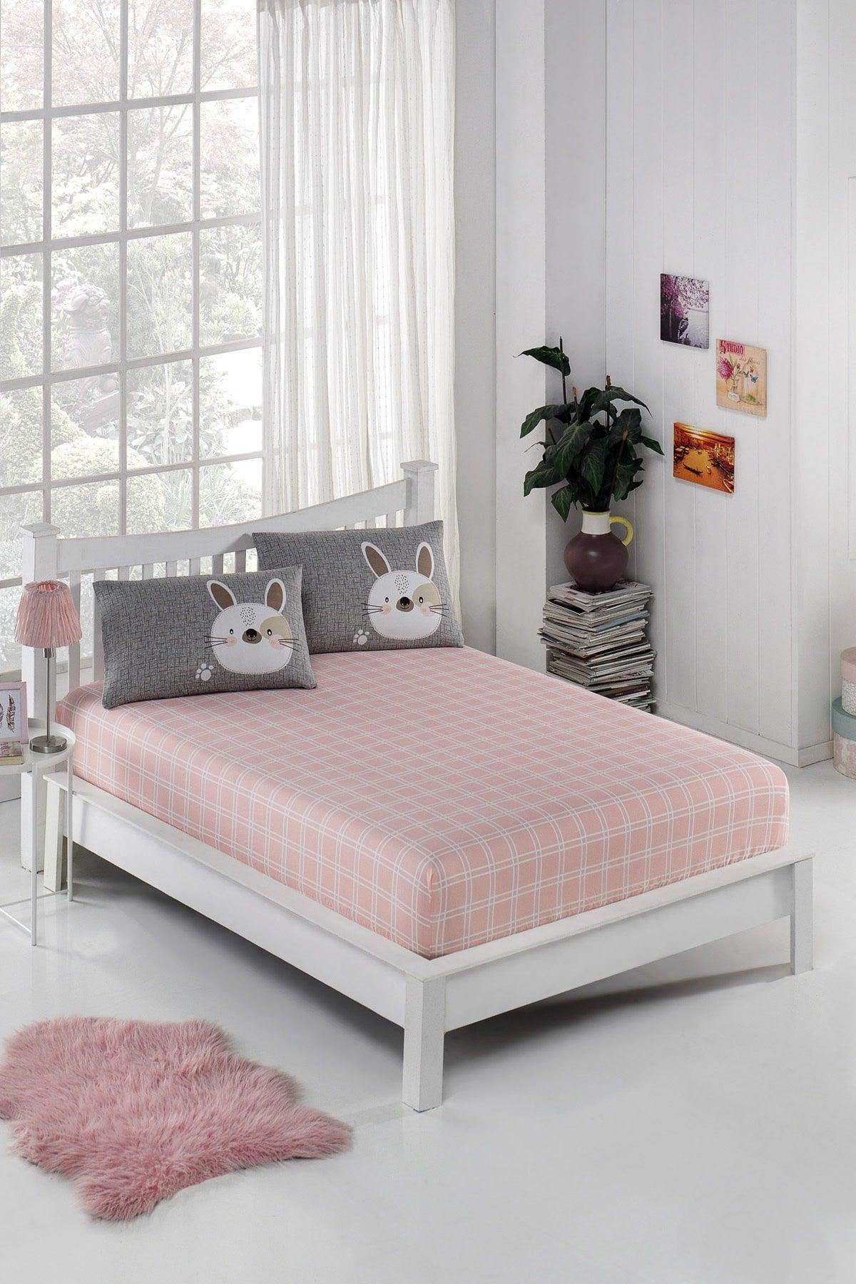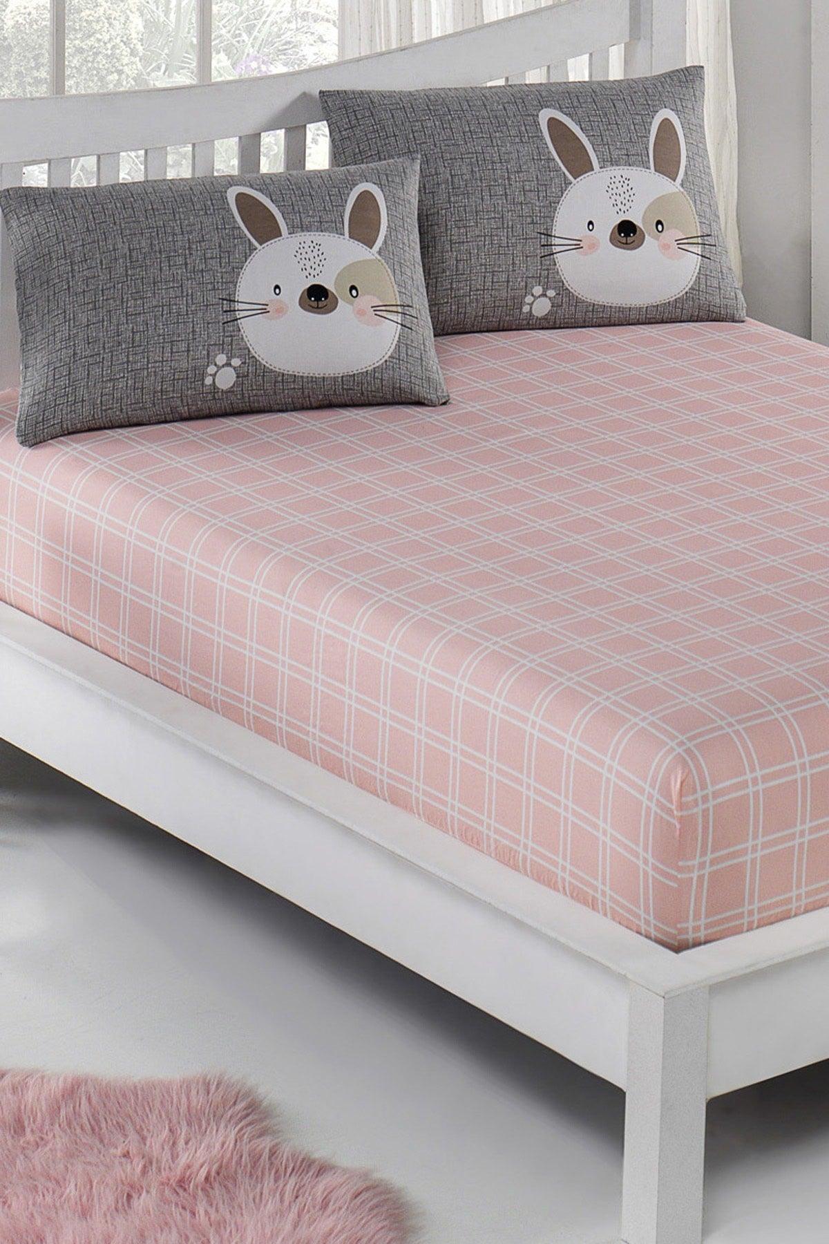 PES elastico foglio del letto set singolo coniglio A. Brown-Grey-Pink
