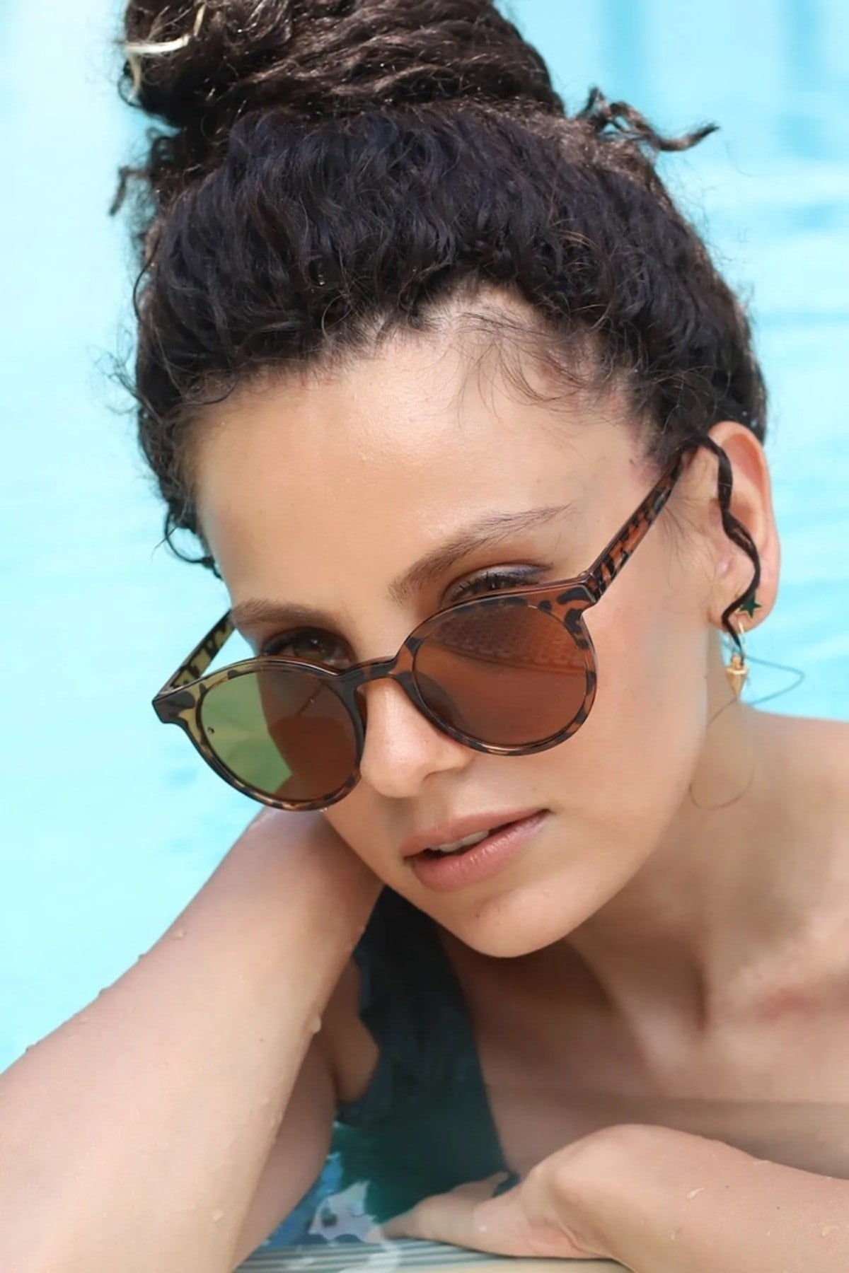 Round Uv 400 Zebra Pattern Sunglasses Micro Beige Detailed