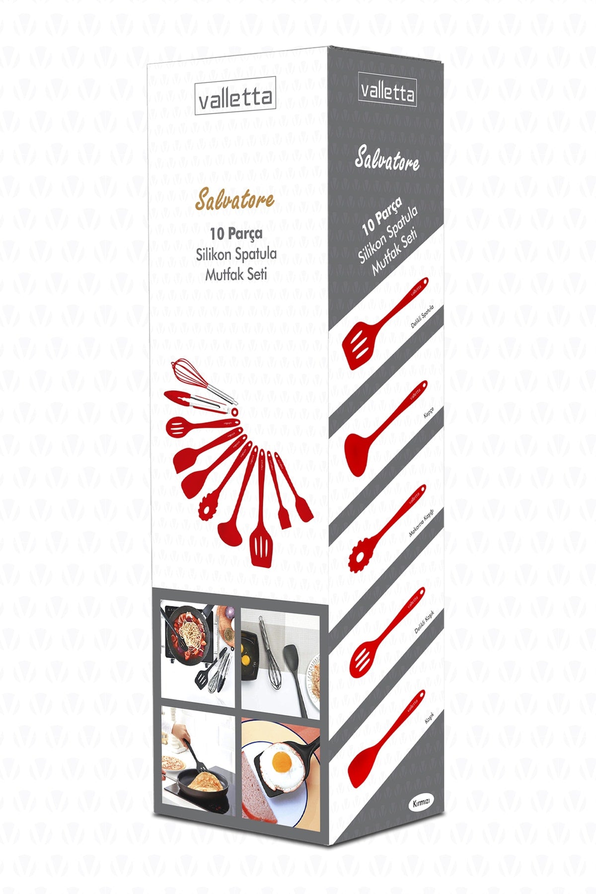 Salvatore Heat Resistant Fireproof Non-Stick Silicone Spatula Set 10 Pieces Red