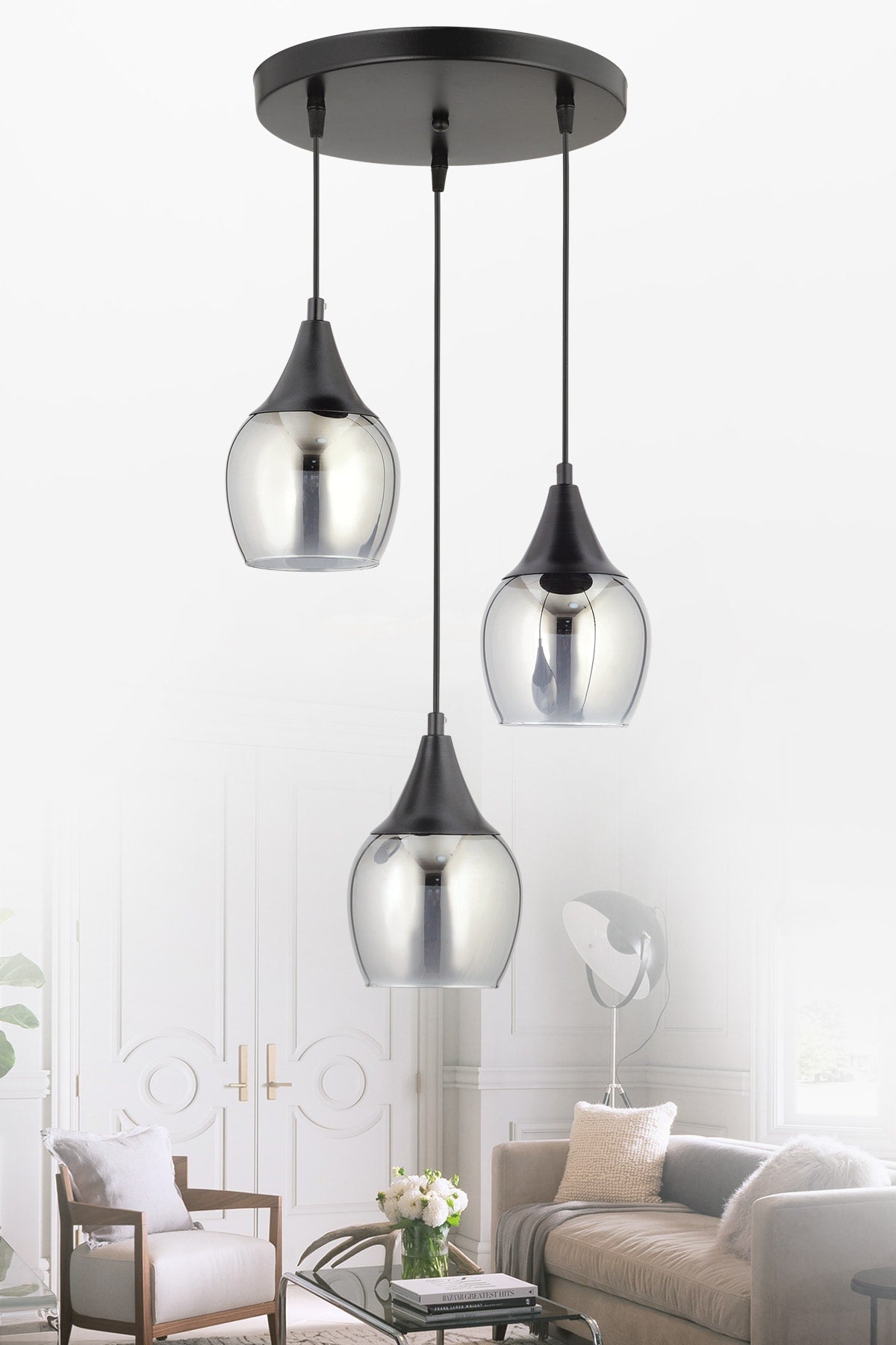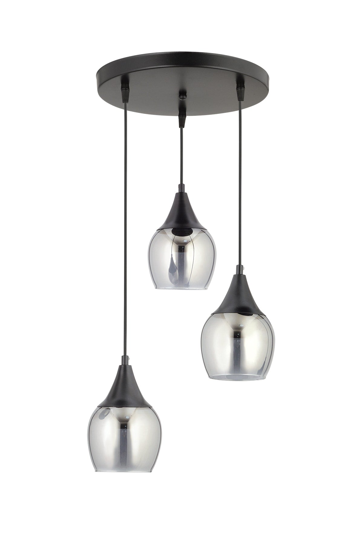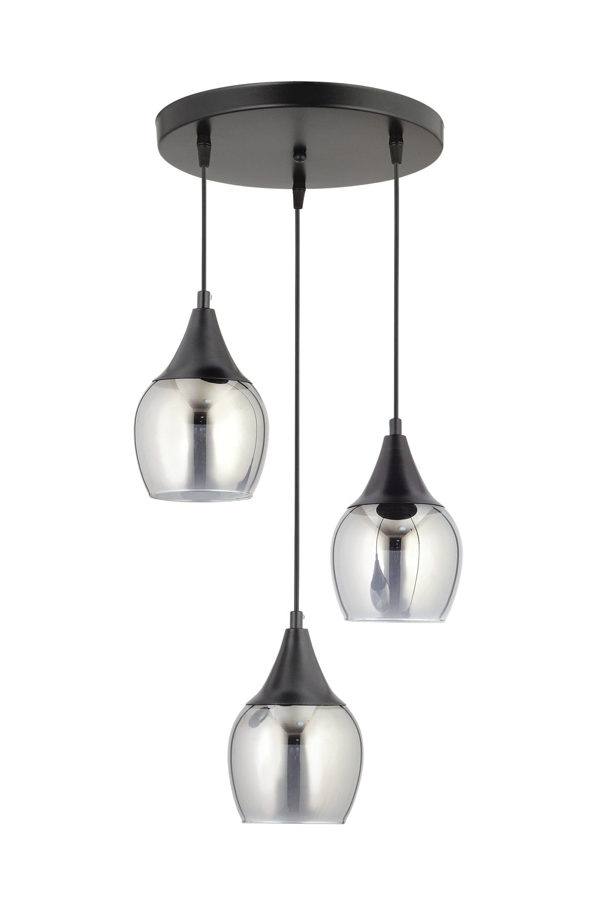Sante 3-Piece Black Smoked Glass Modern Pendant Lamp Chandelier Living Room Kitchen Room Hallway Chandelier