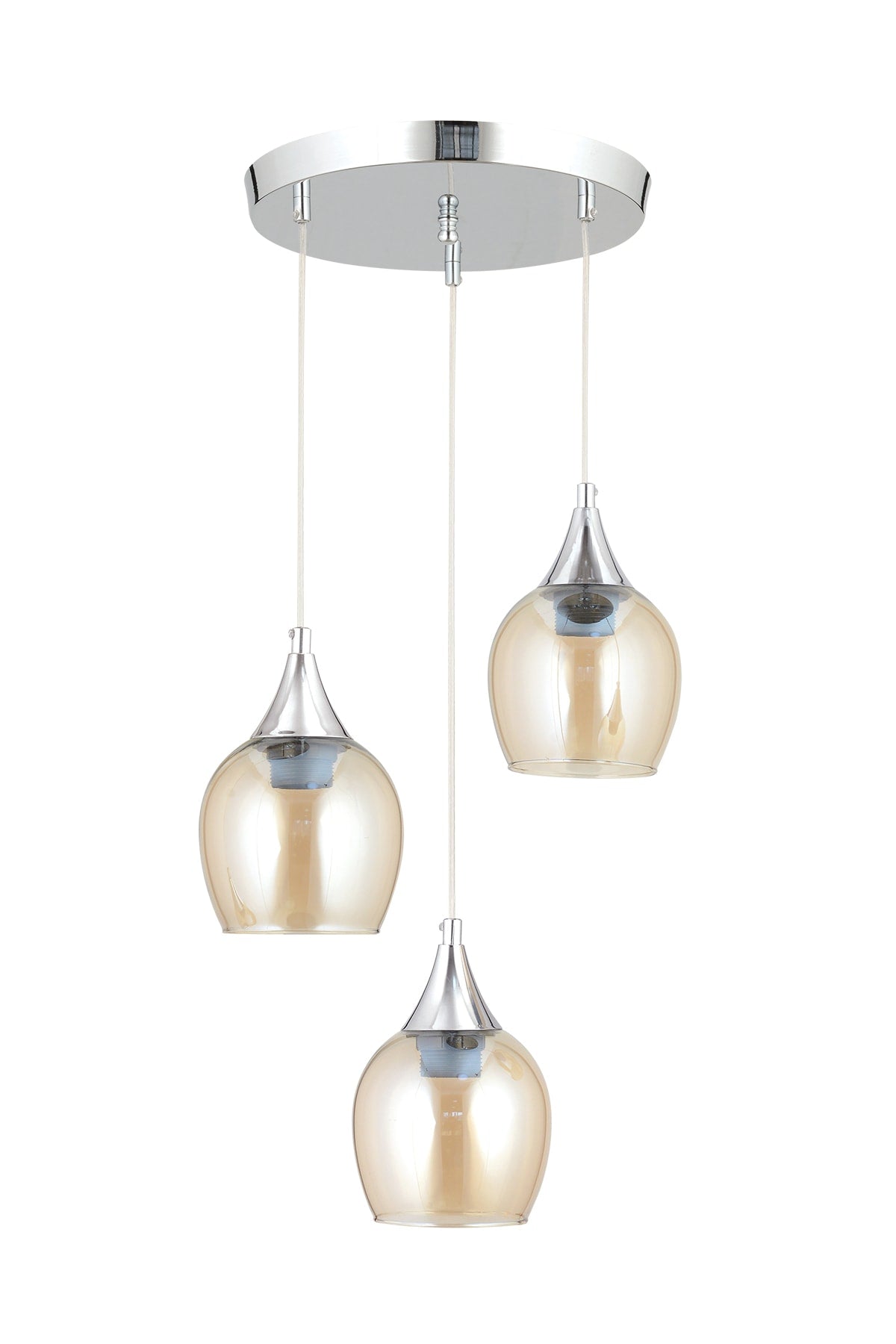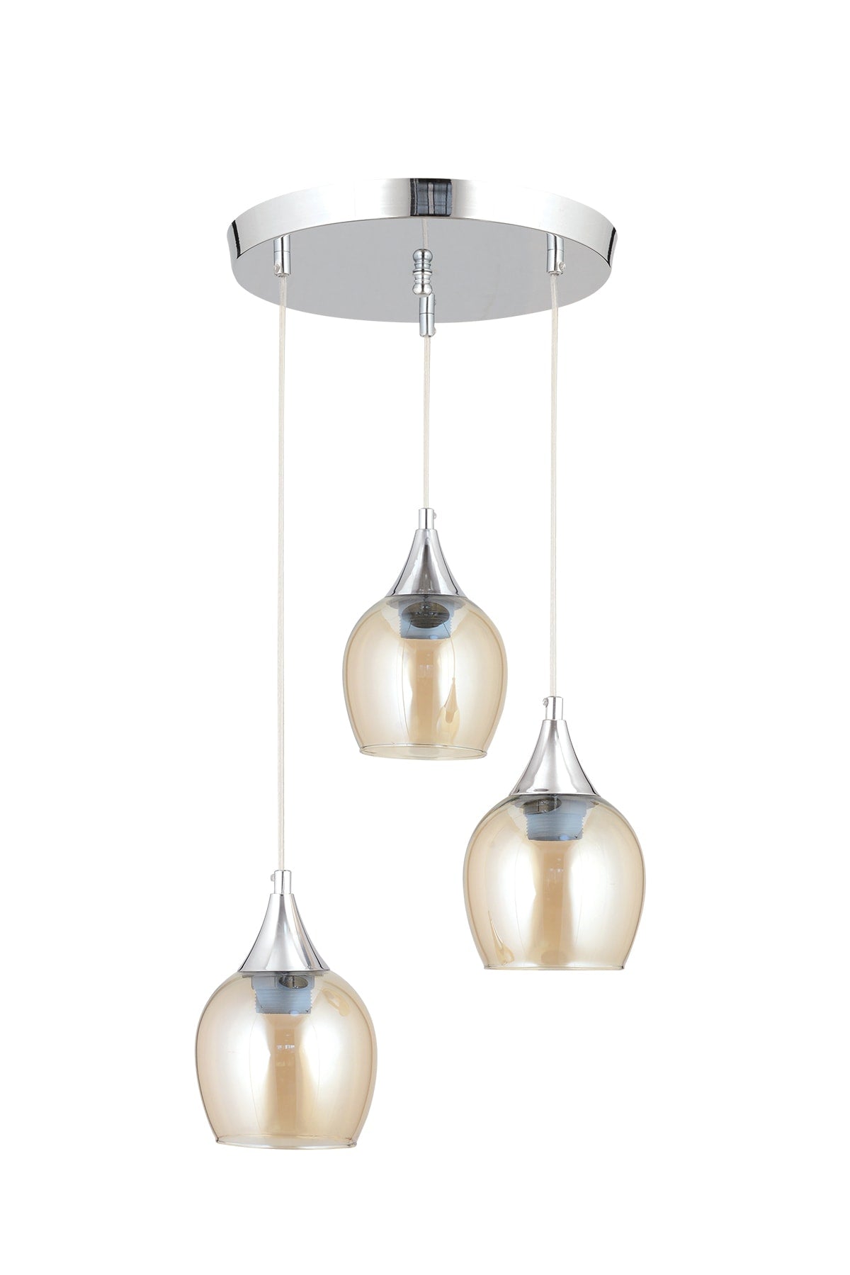 Sante 3-Piece Chrome Honey Glass Modern Pendant Lamp Chandelier Living Room Kitchen Room Hallway Chandelier