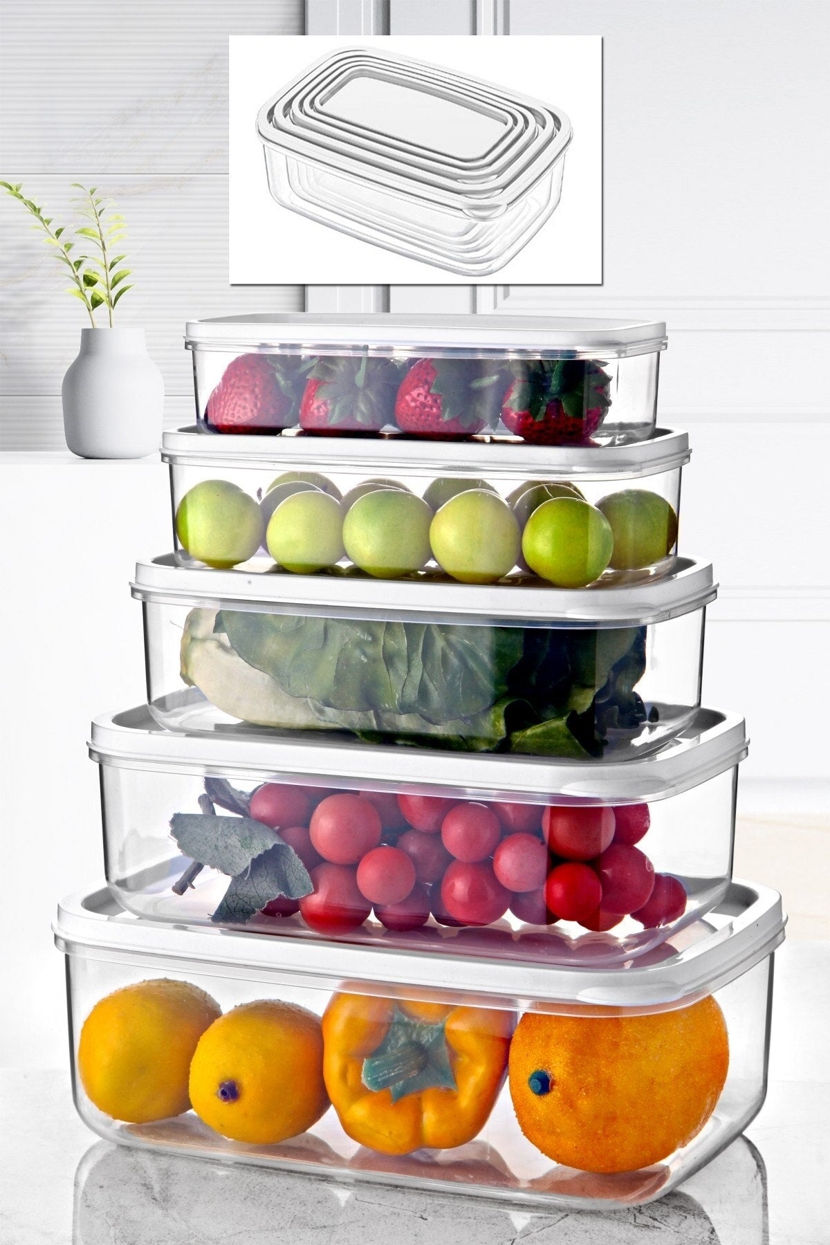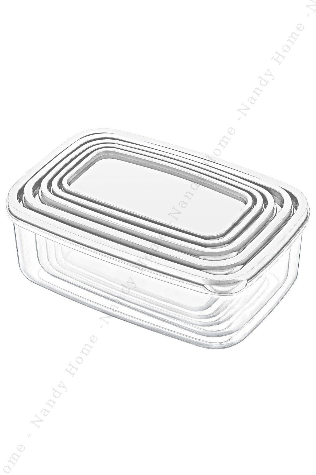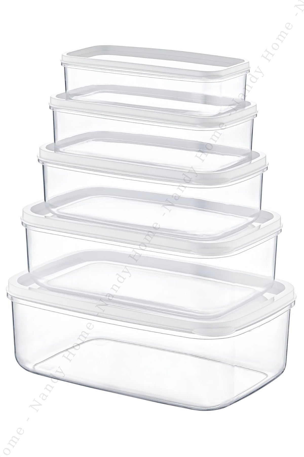 Set Of 5 Embox Rectangular Provisions, Food Storage Container White