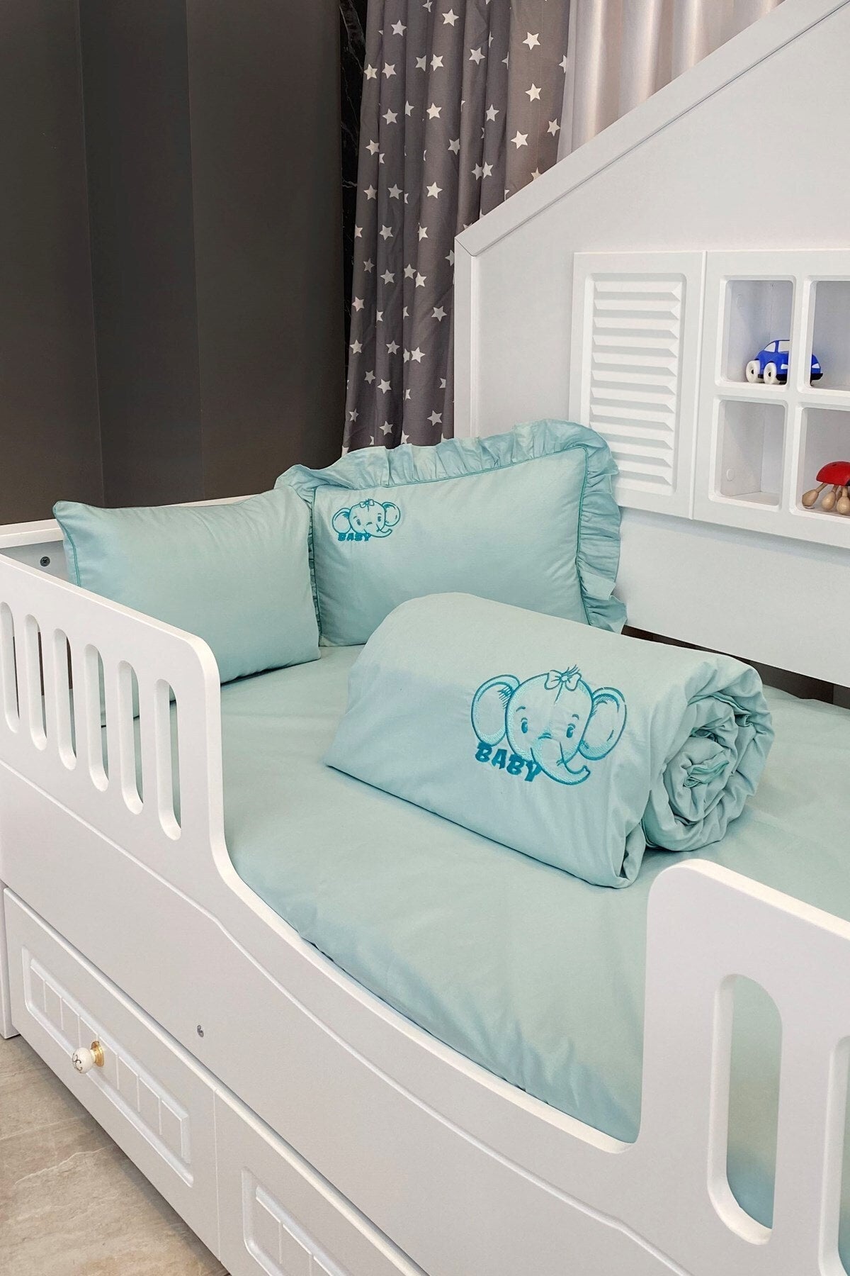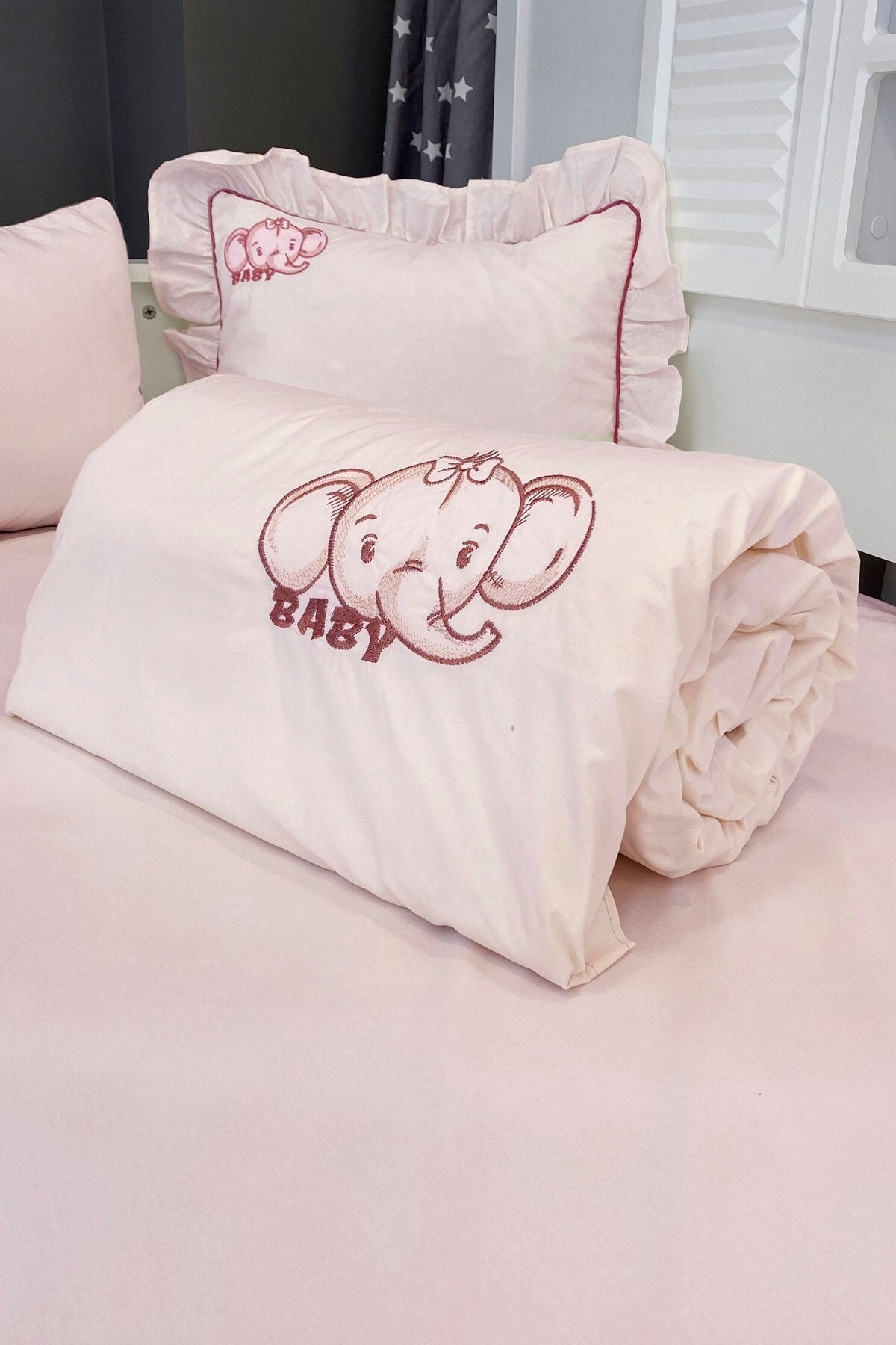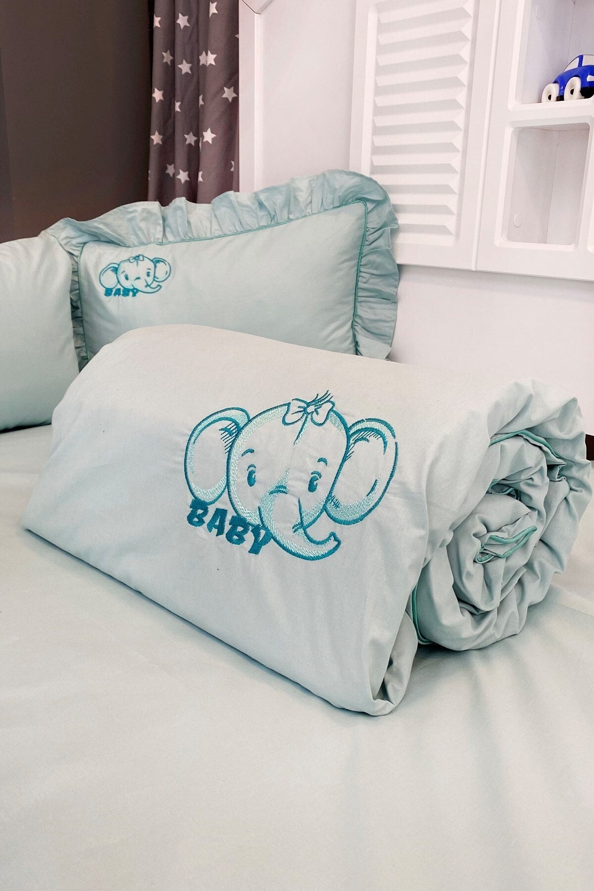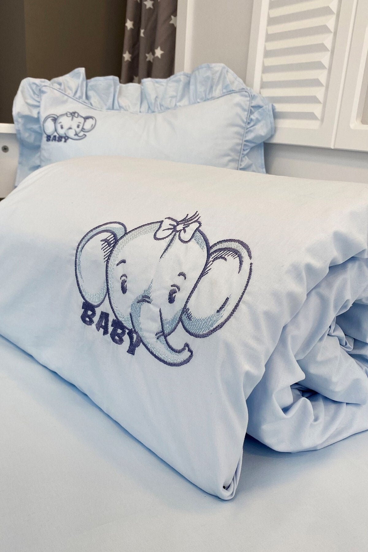 Special Design Elephant Embroidered Baby Duvet Cover Set 11680