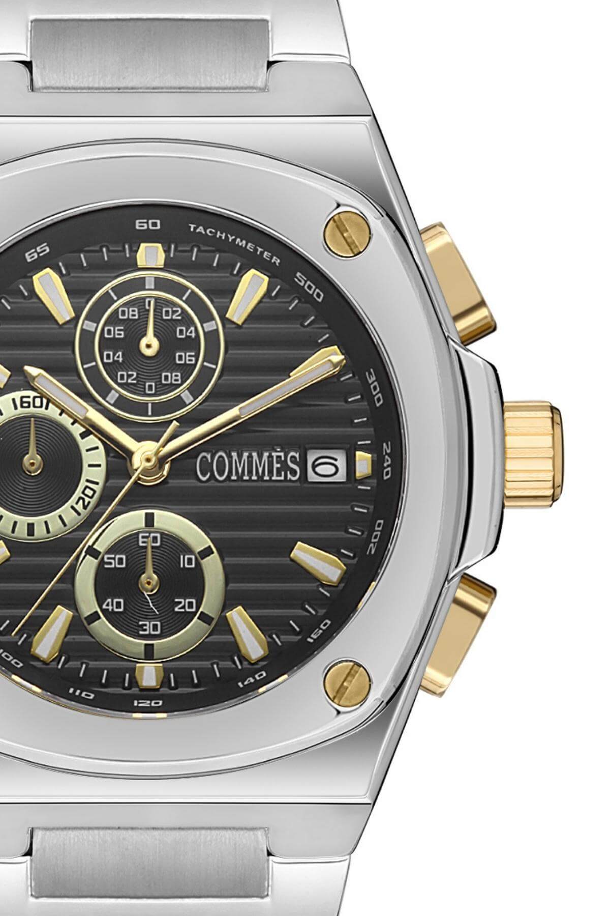 Commes steel band silver black color men's classic wristwatch with stopwatch and calendar cm1939-sggbscratch-resistant hardlex crystal special cut glass.long-lasting quartz analog japanese movement.stainless steel case.stainless steel bracelet.with calendar and stopwatch appearance.water resistant up to 3 atm pressure. special design. it is sent in a stylish box suitable for a gift. all of our products are guaranteed for 2 years. it has a classic round case design. it has a standard battery powered quartz mechanism. Improved version for clearer understanding and better search visibility. Suitable for users seeking detailed and reliable product information.