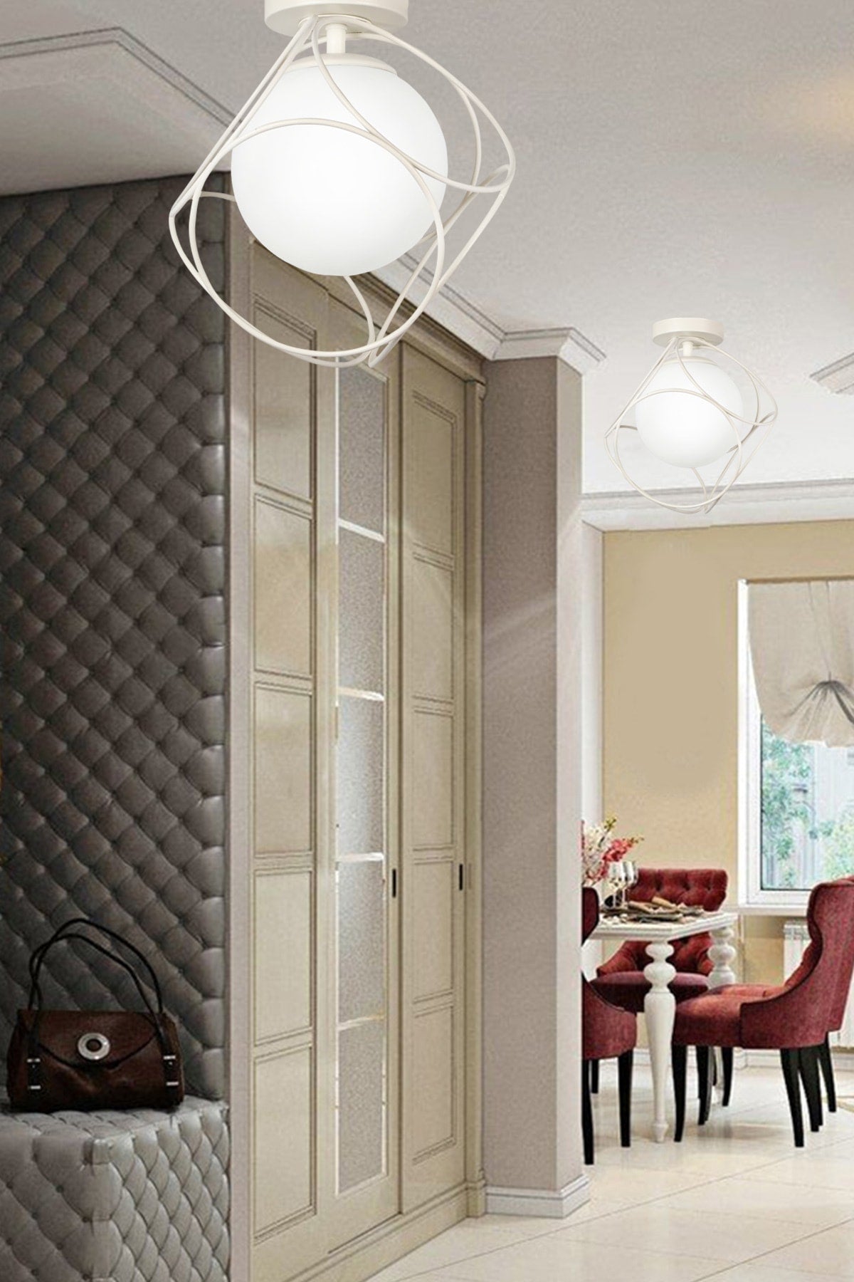 Suna Single White-White Glass Ceiling Mount Chandelier