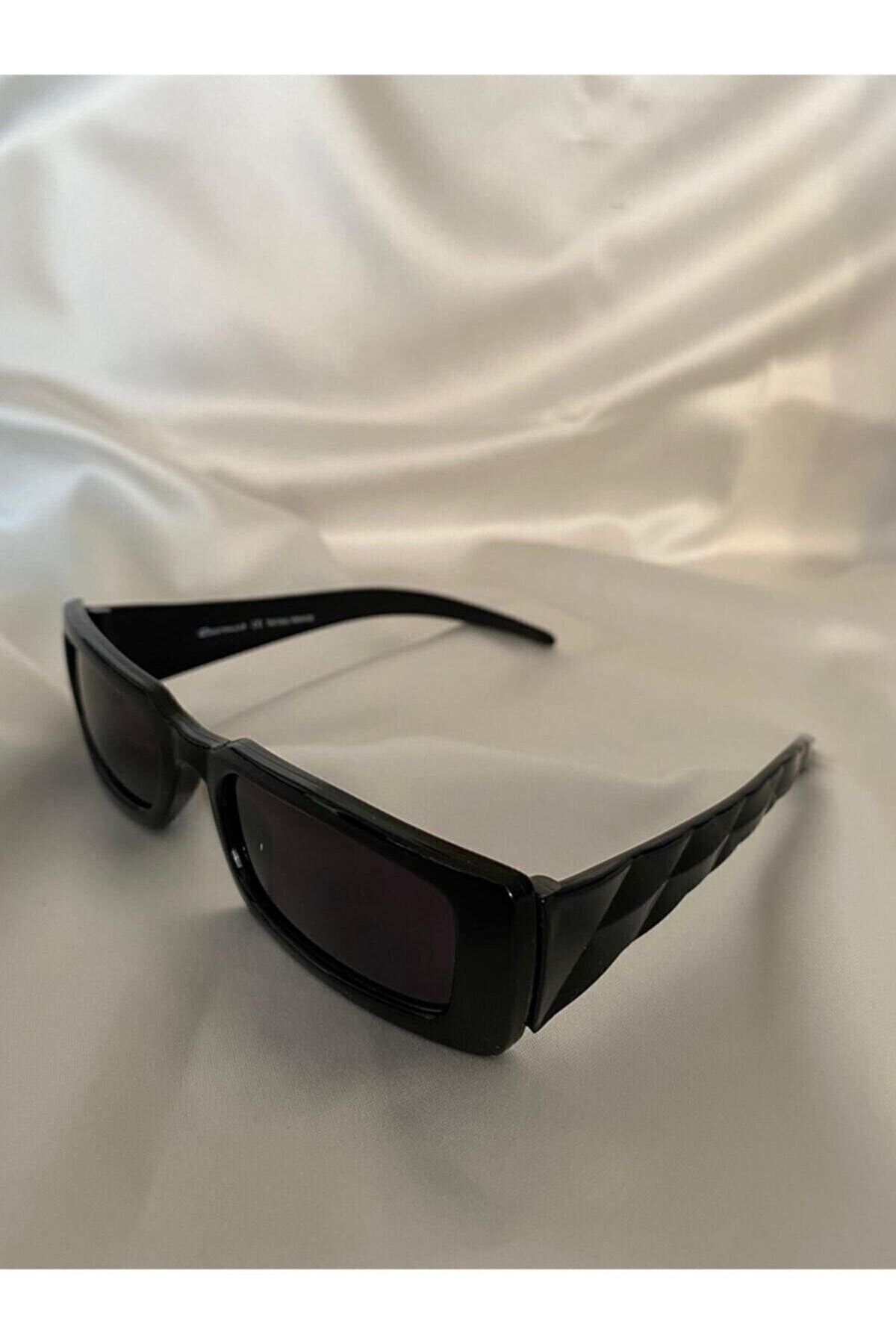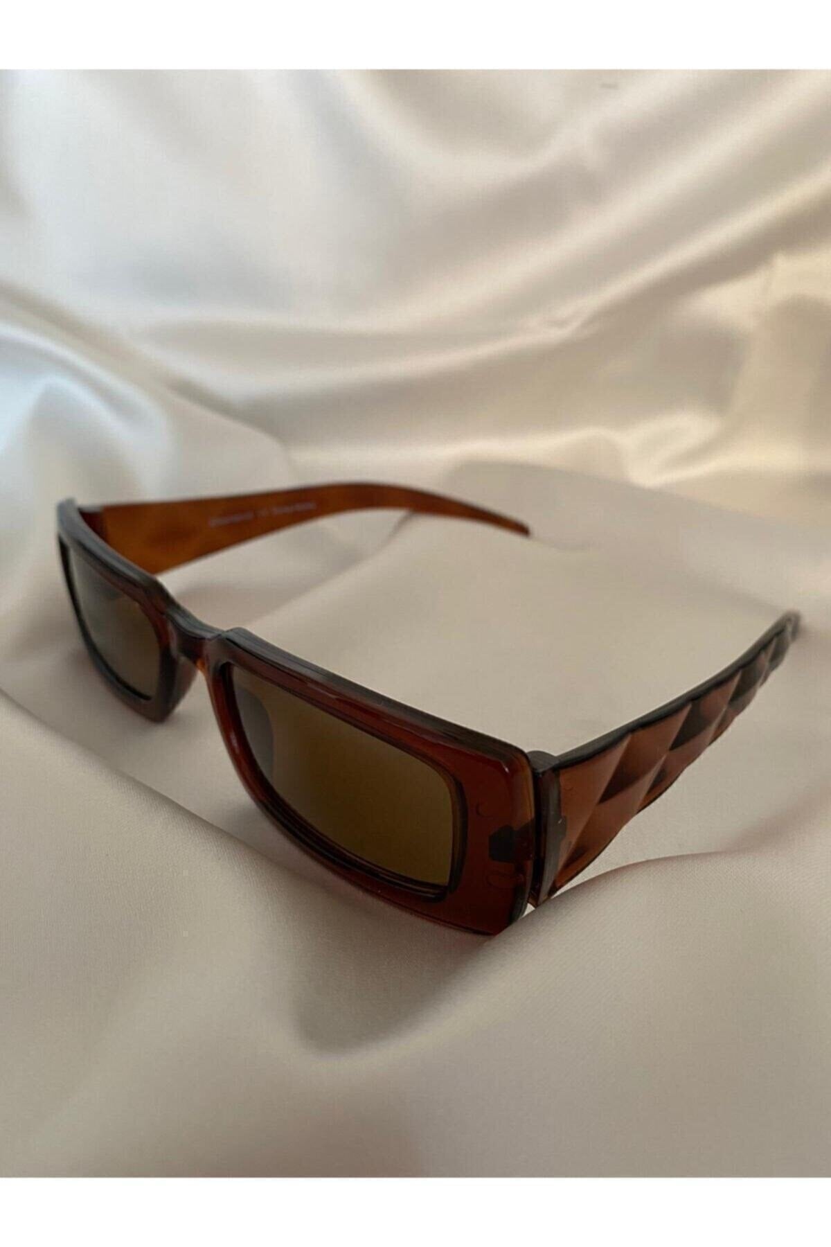 Unisex Vintage Model Diamond Pattern Detailed Black Honey Beige Sunglasses