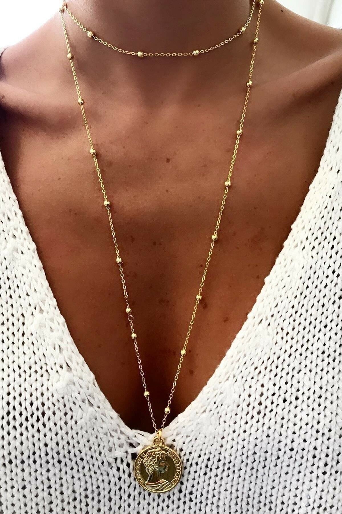Women'S Gold Color Long Locket Necklace