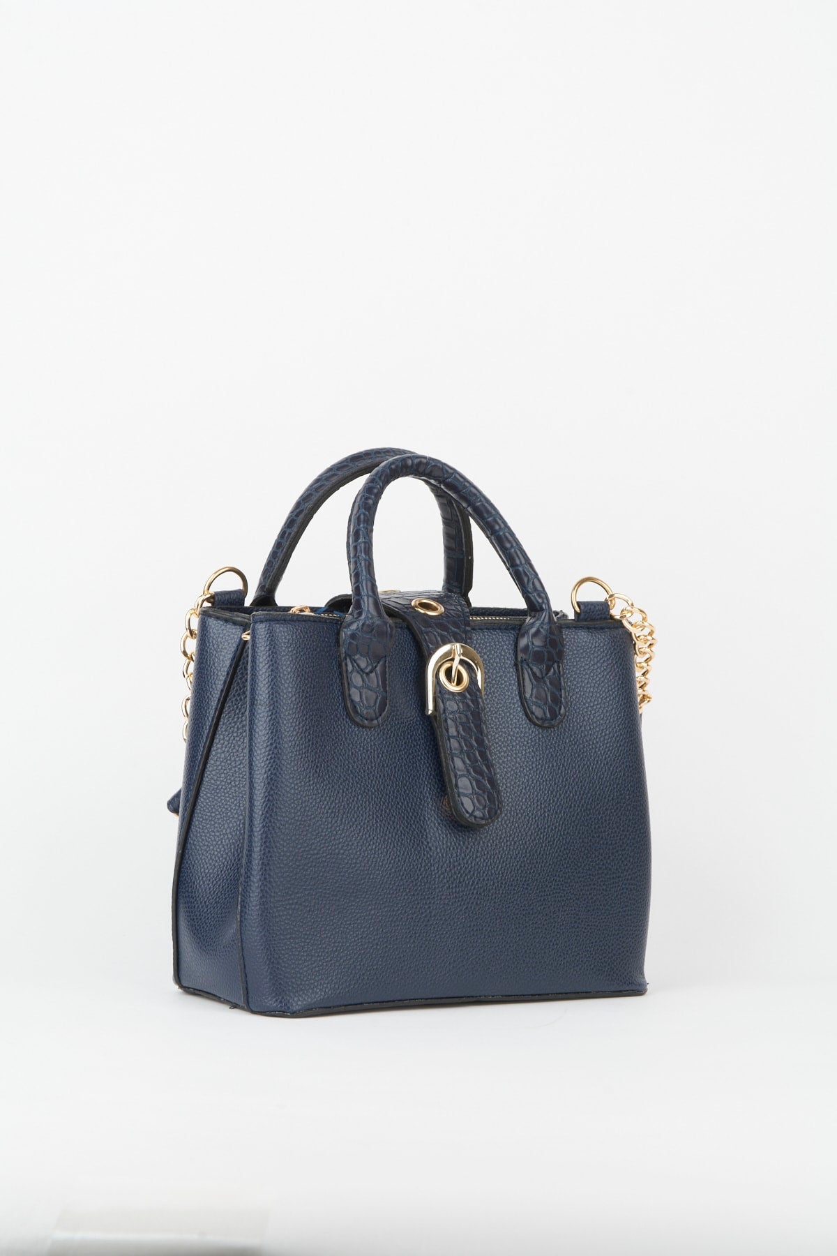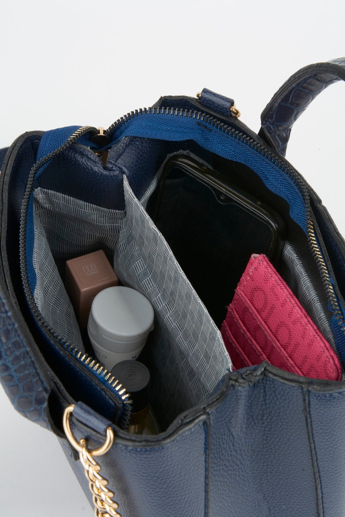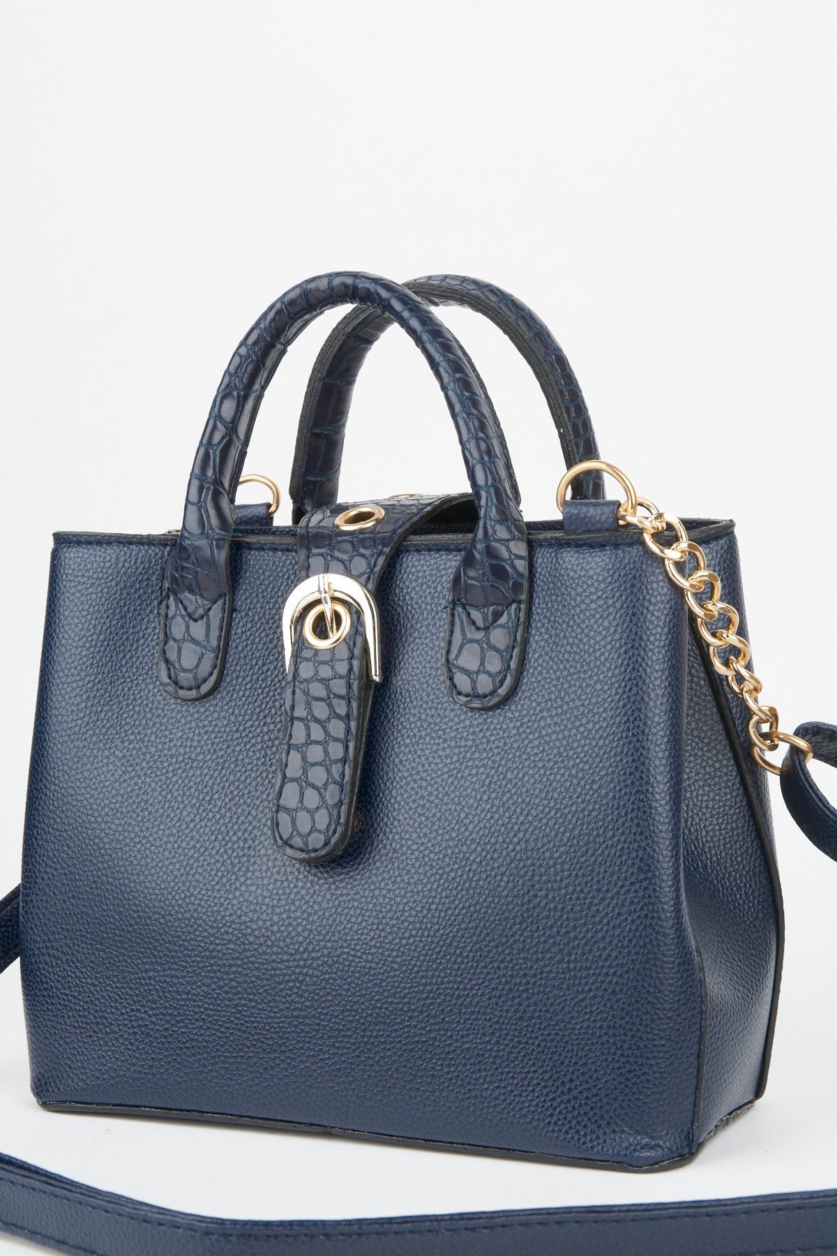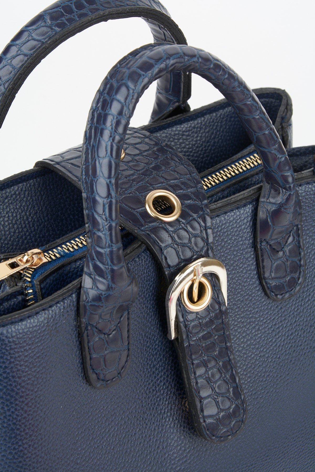 Women'S Navy Blue Croco Handle 2 Compartment Snap Zipper Closure Hand And Shoulder Bag With Strap