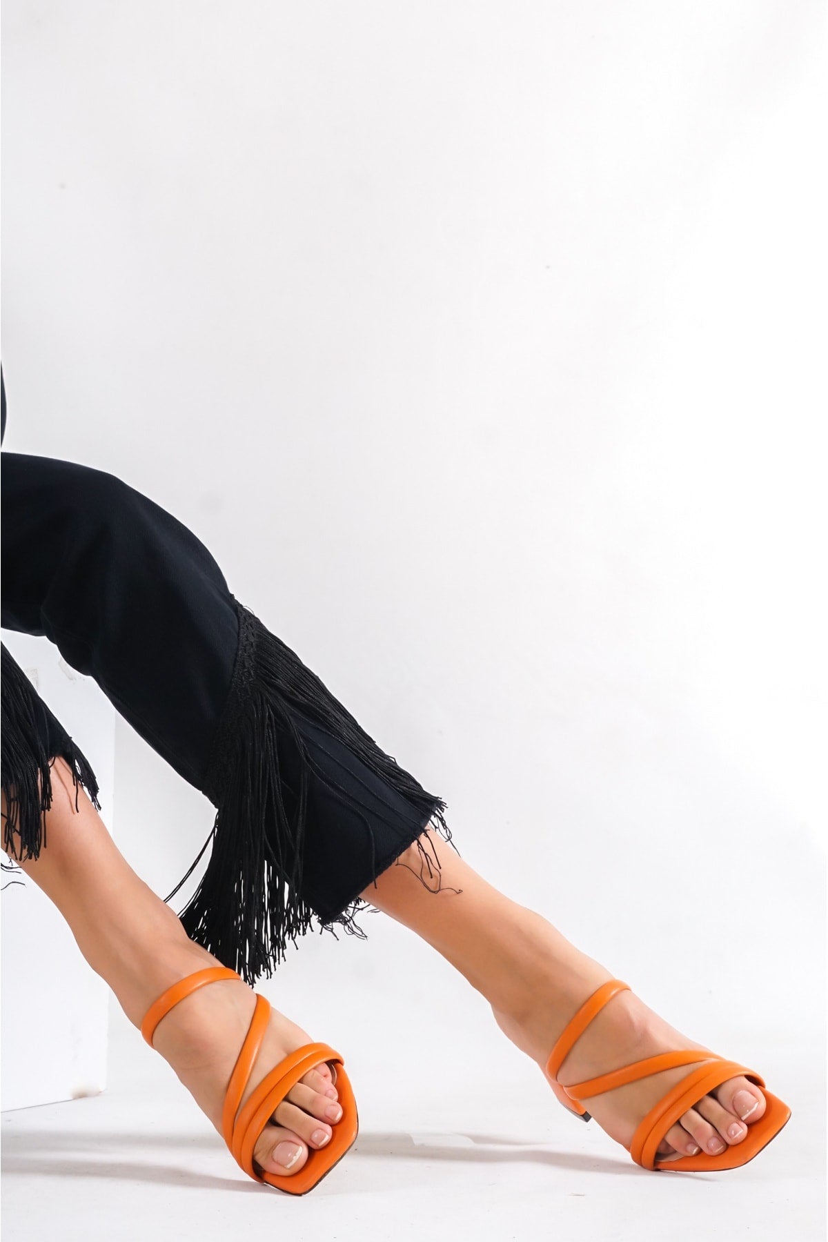 Women'S Orange Heeled Slippers Sandals Ba20888