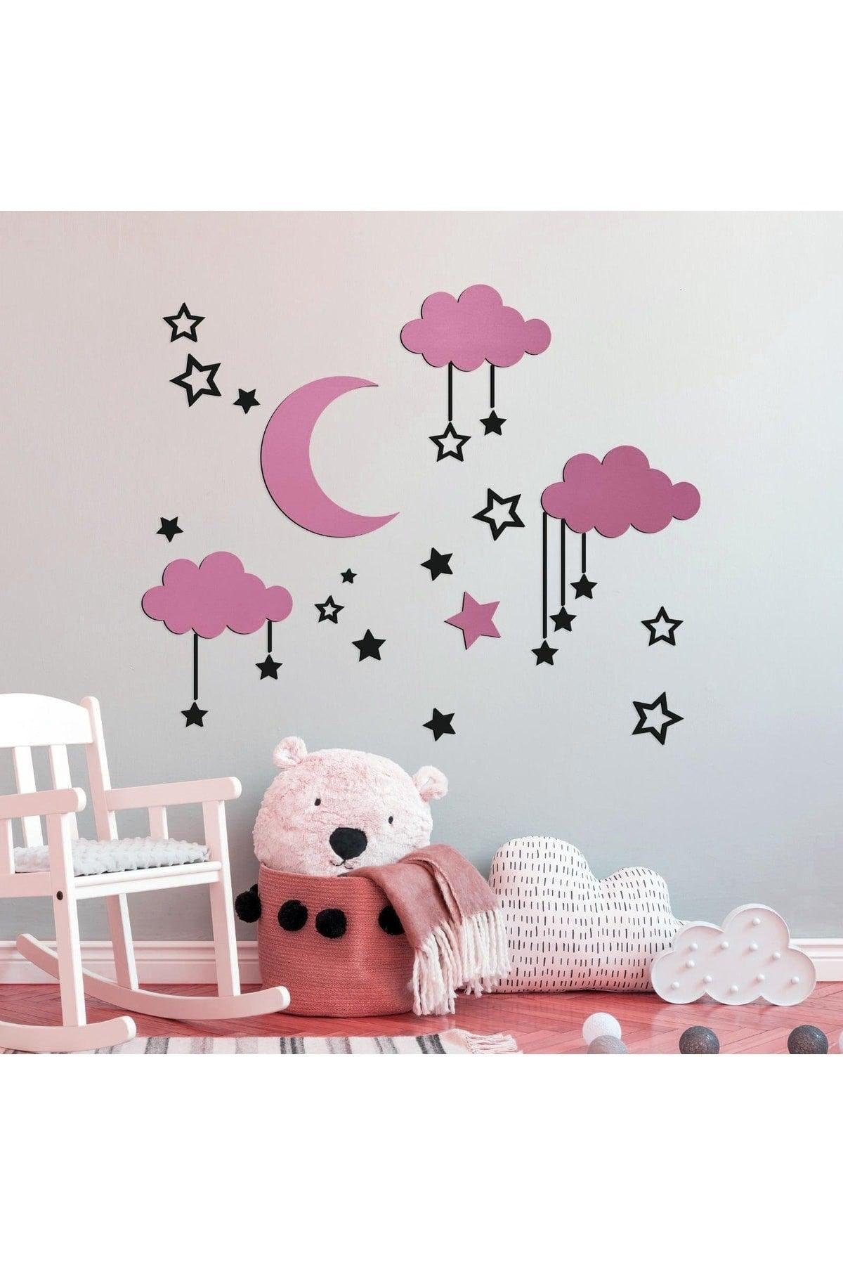 Decorazioni murali compositive di legno per la sala per bambini rosa-nero