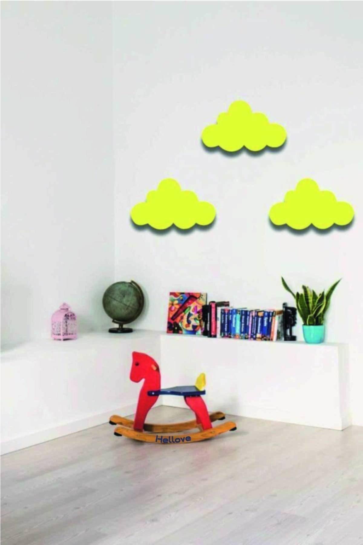 Nuvola gialla da 3 pezzi set di decorazioni da parete in legno ornamento per bambini.