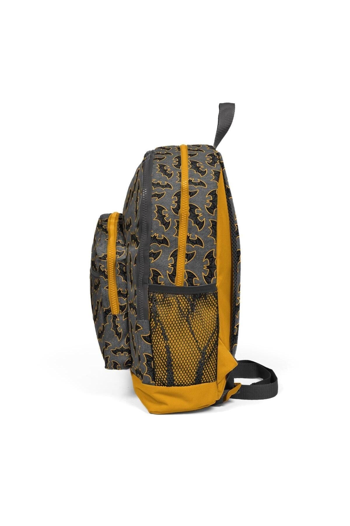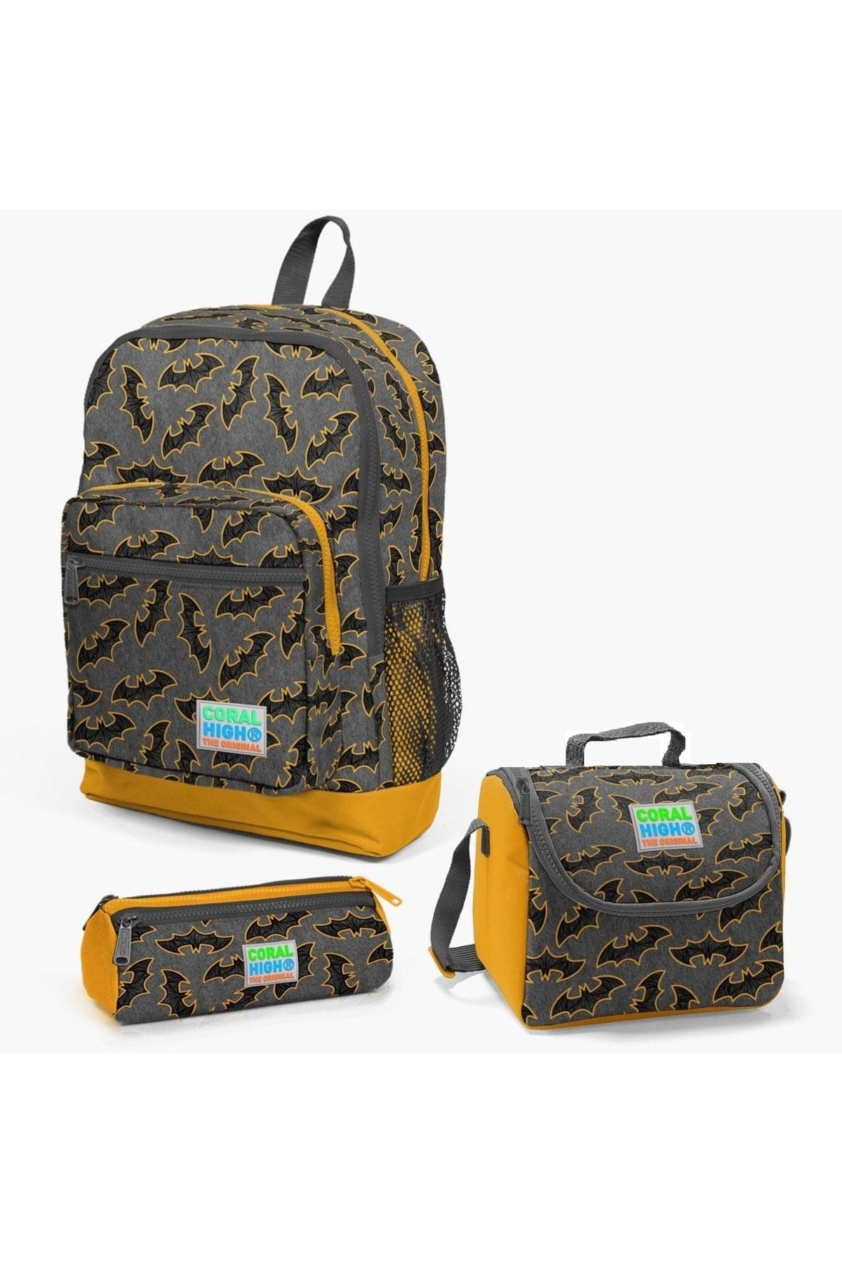 Kids Dark Gray Mustard Bat Patterned 3-Piece School Bag Set