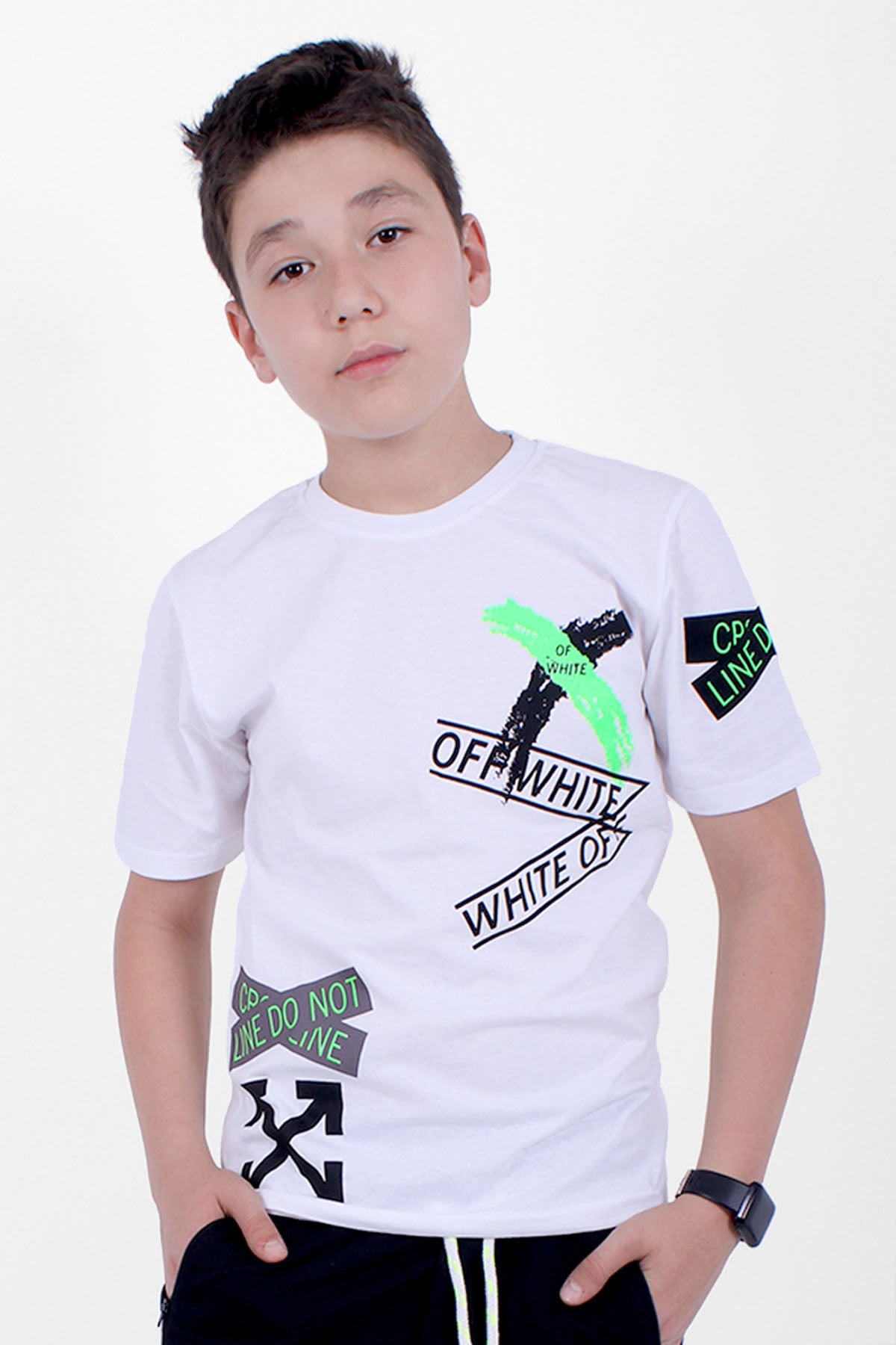 3 Piece Printed X Collection Boys White Black Gray T-Shirt