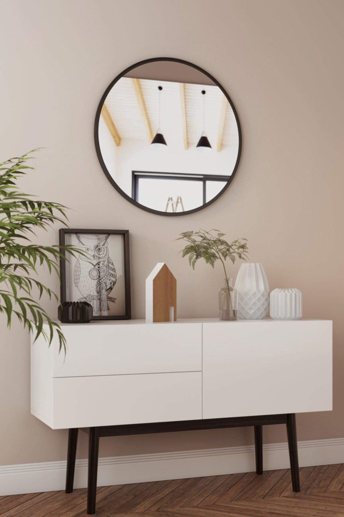 60 Cm Black Metal Framed Round Mirror - Swordslife