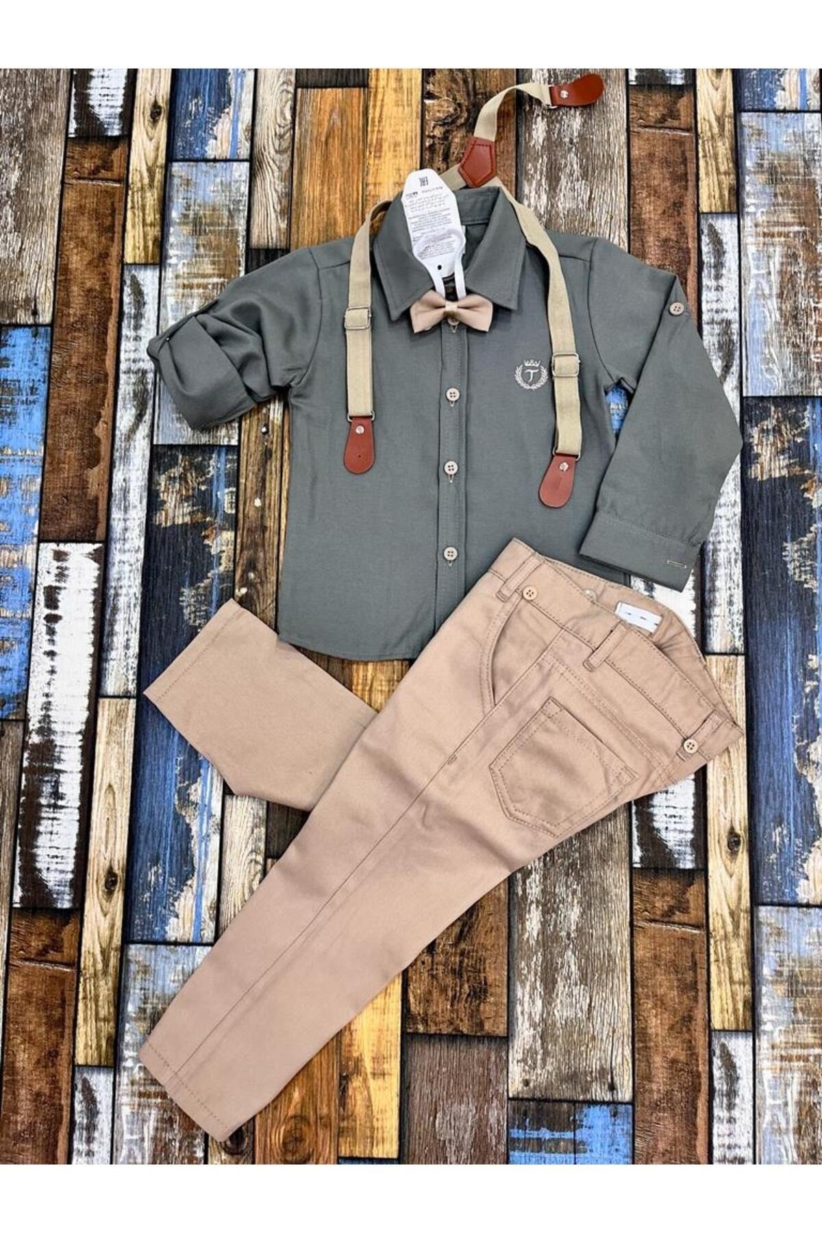 Boy'S Suspenders And Bow-Tie Shirt And Trousers Suit