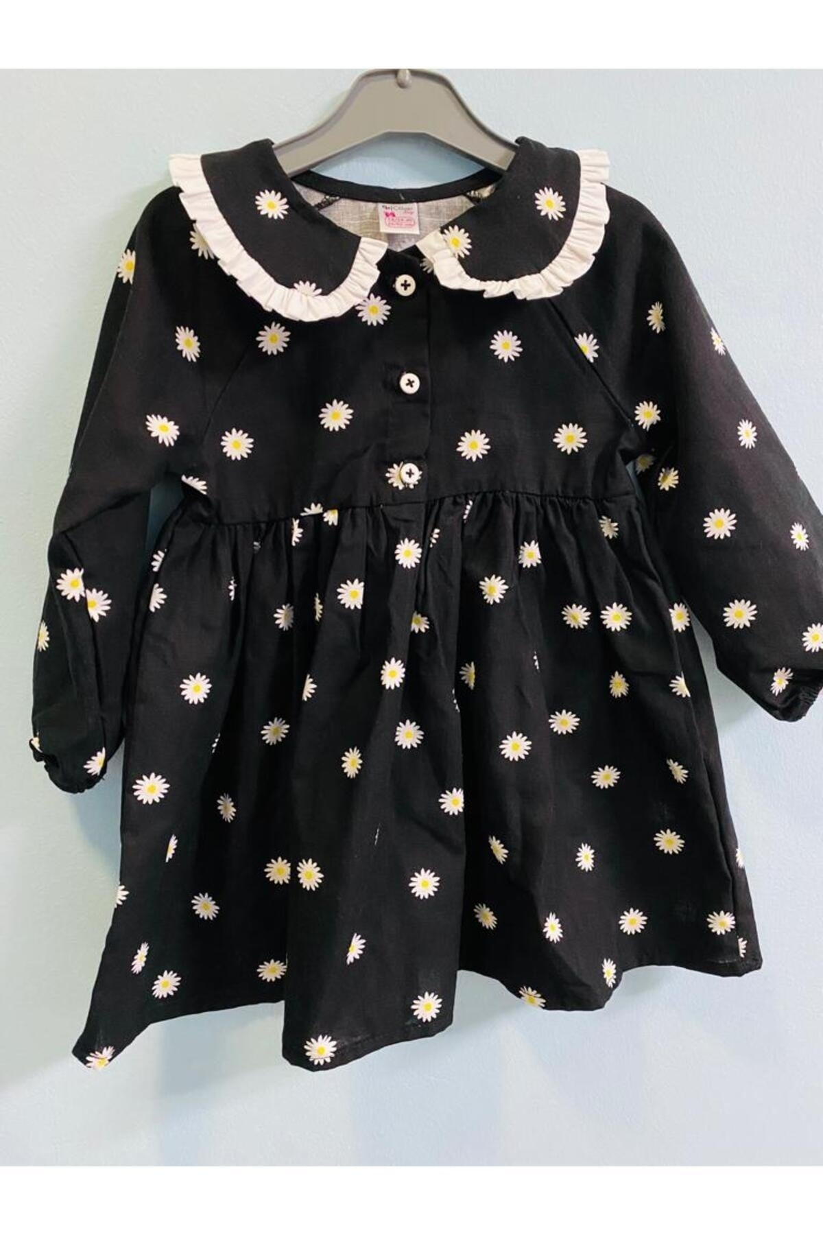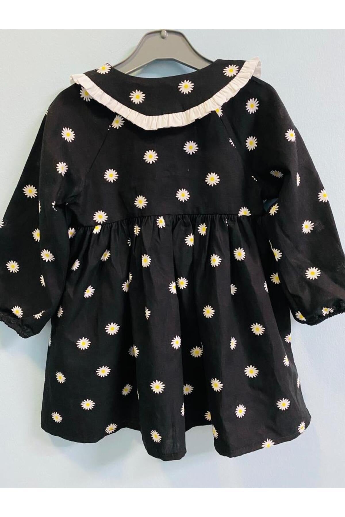 Daisy Patterned Long Sleeve Dress With Rubbed Collar