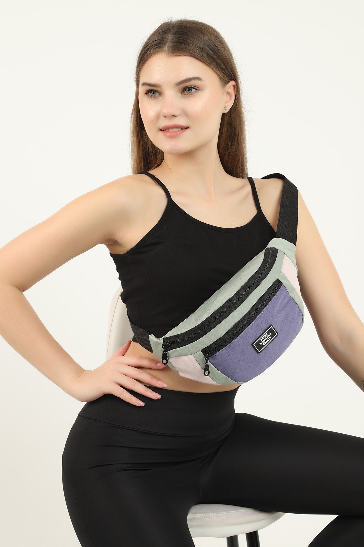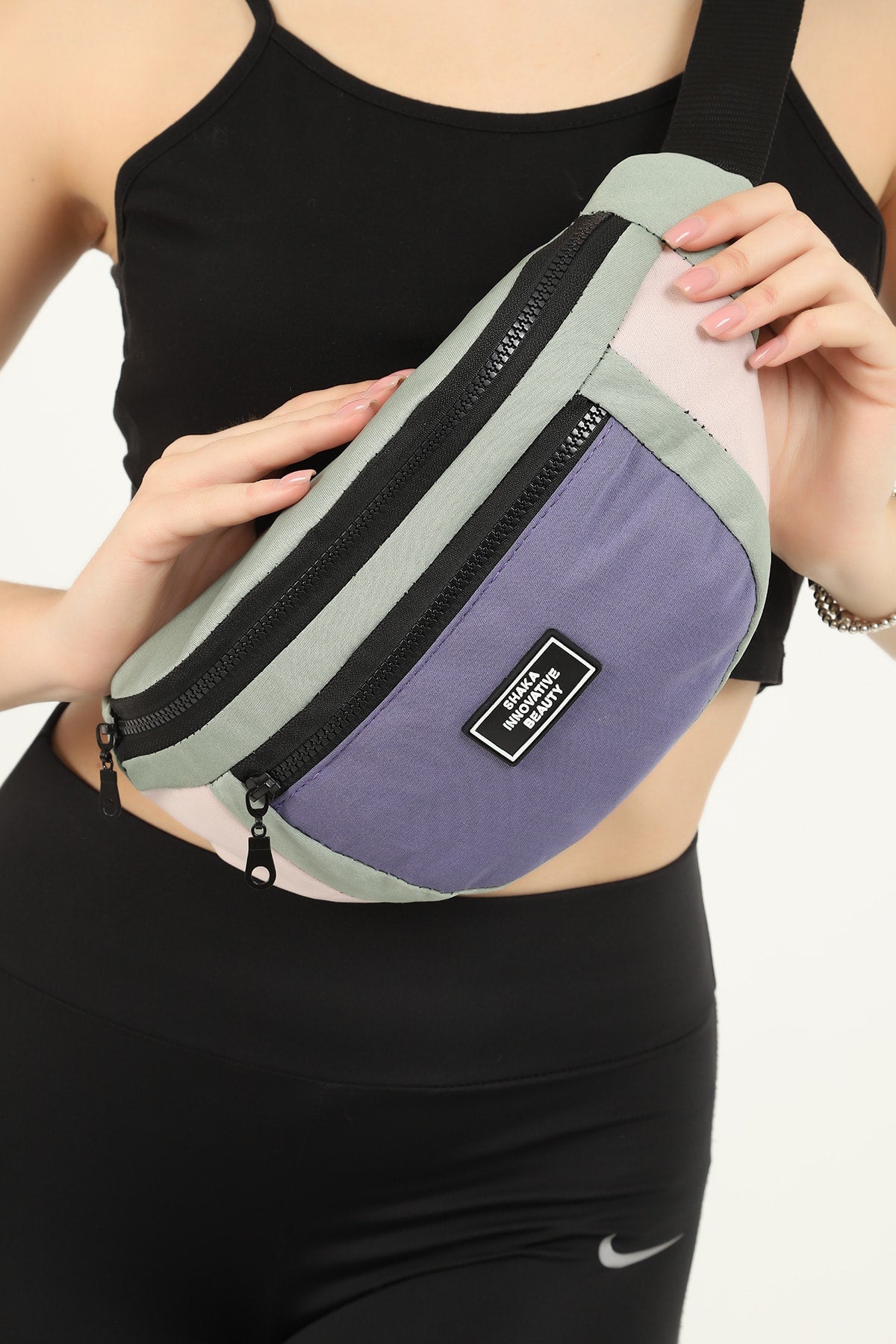 Green/Powder/Lilac U8 2-Compartment Adjustable Cross Strap Canvas Unisex Waist And Shoulder Bag E:38 B:1