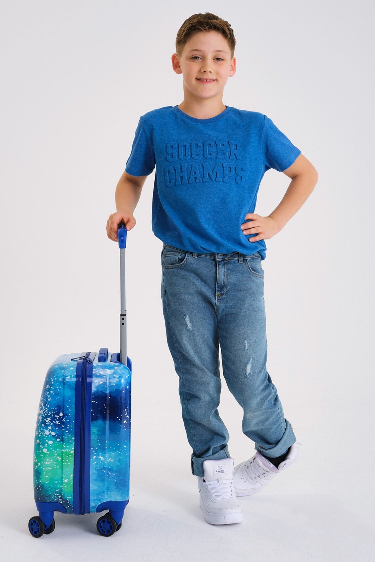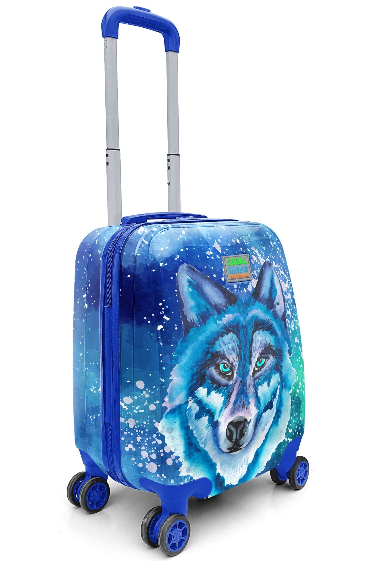Kids Navy Blue Wolf Patterned Child Suitcase 16734