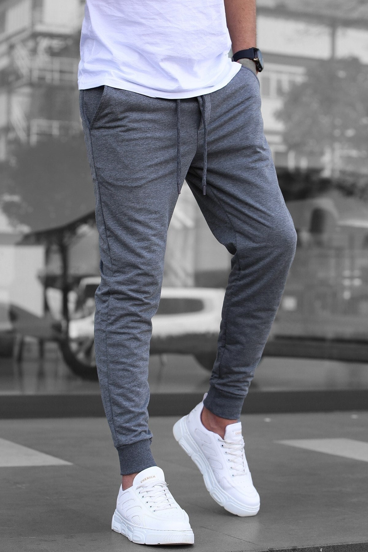 Men'S Anthracite Elastic Trousers 4821