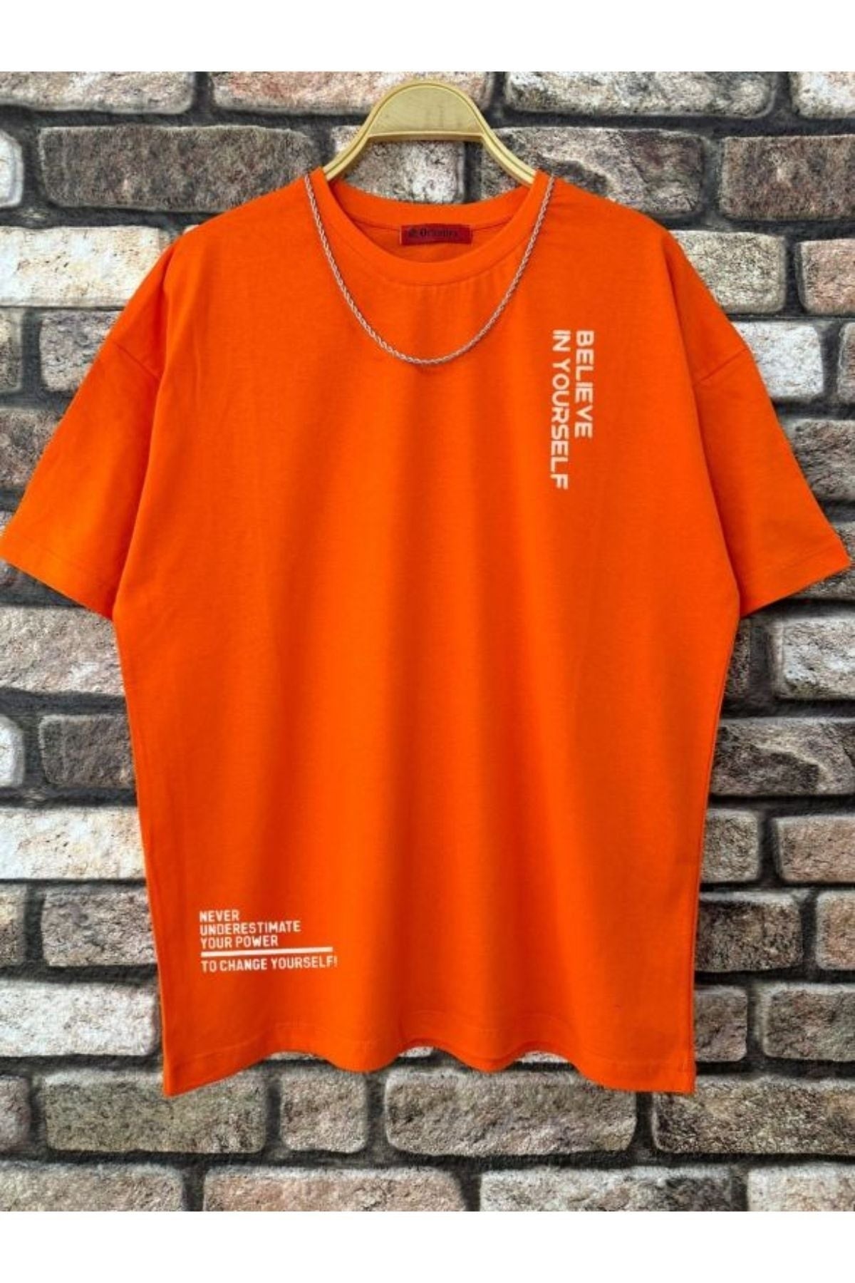 Men'S Orange Believe Printed Oversize T-Shirt