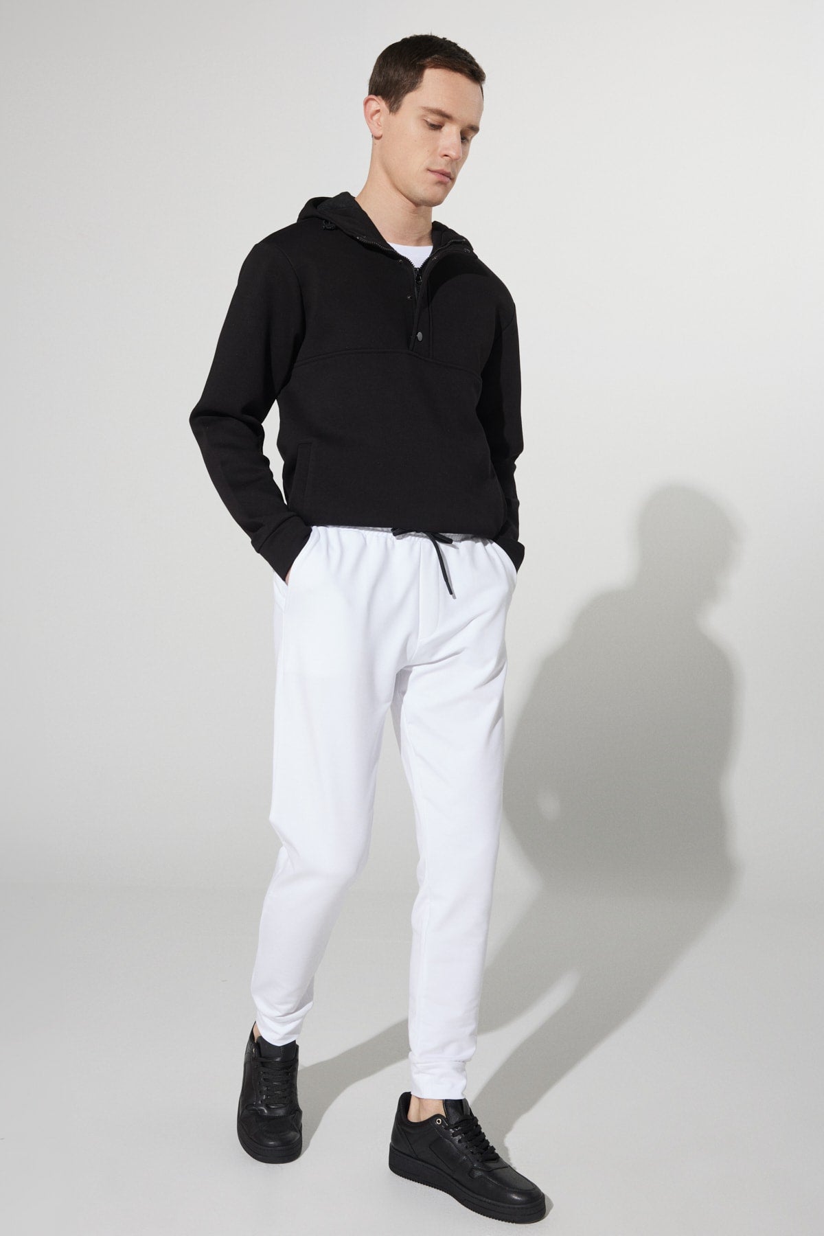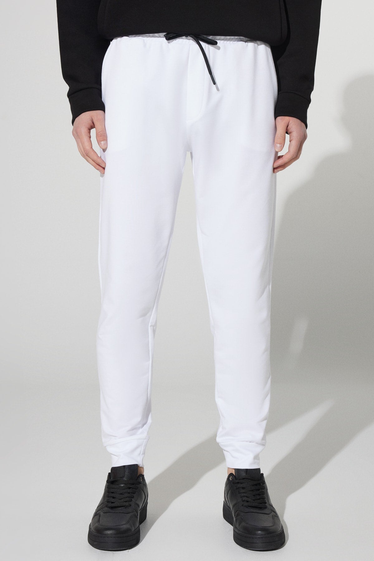 Men'S White Standard Fit Normal Cut Pocket Cotton Comfort Sweatpants