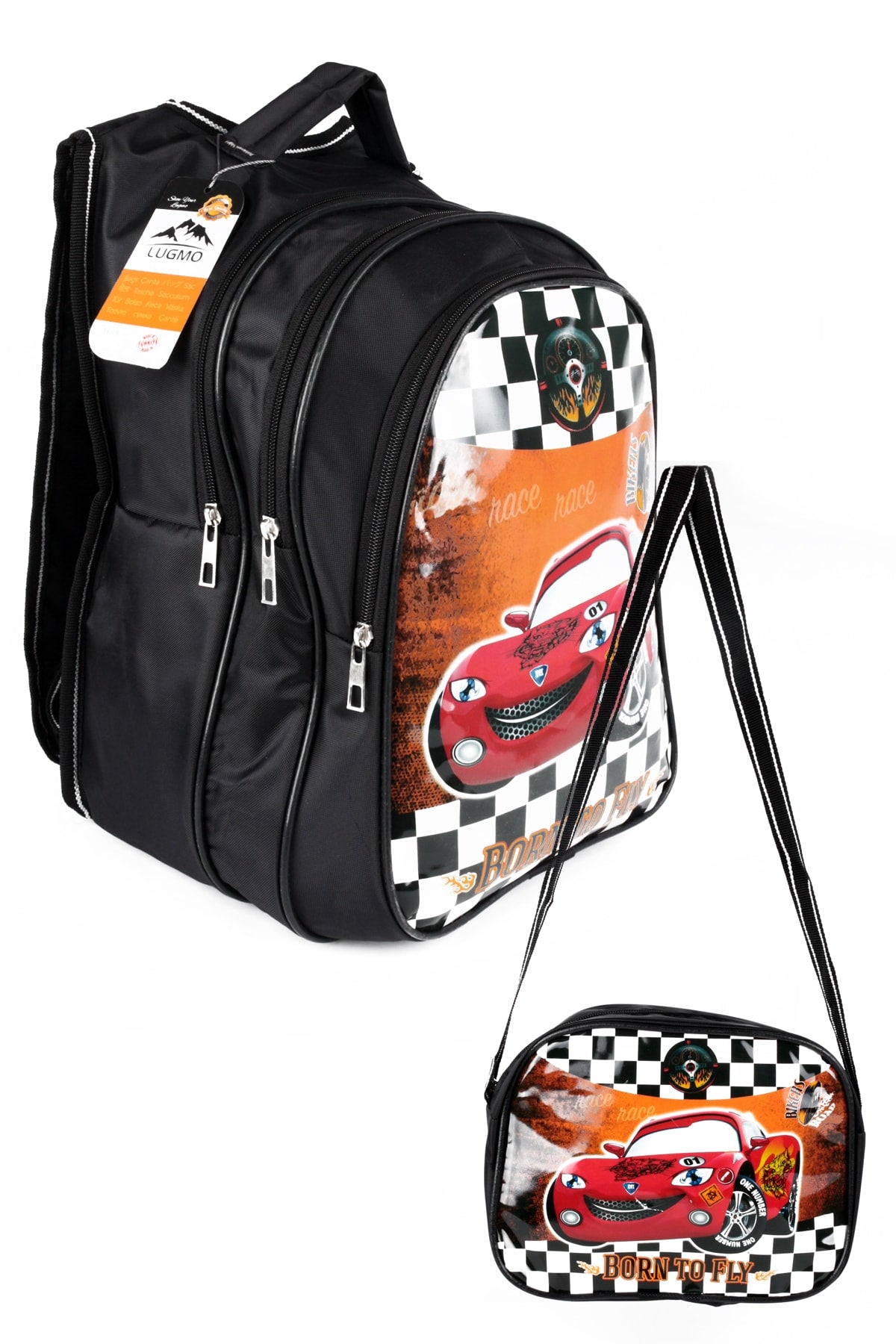 Middle School Primary School Bag And Lunch Box 3 Pockets Padded Trolley Black