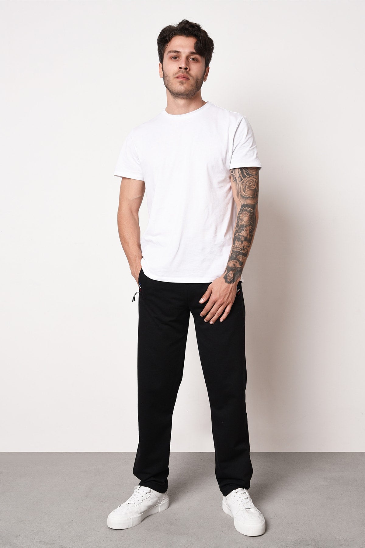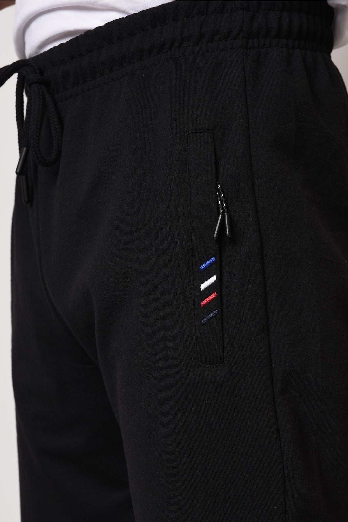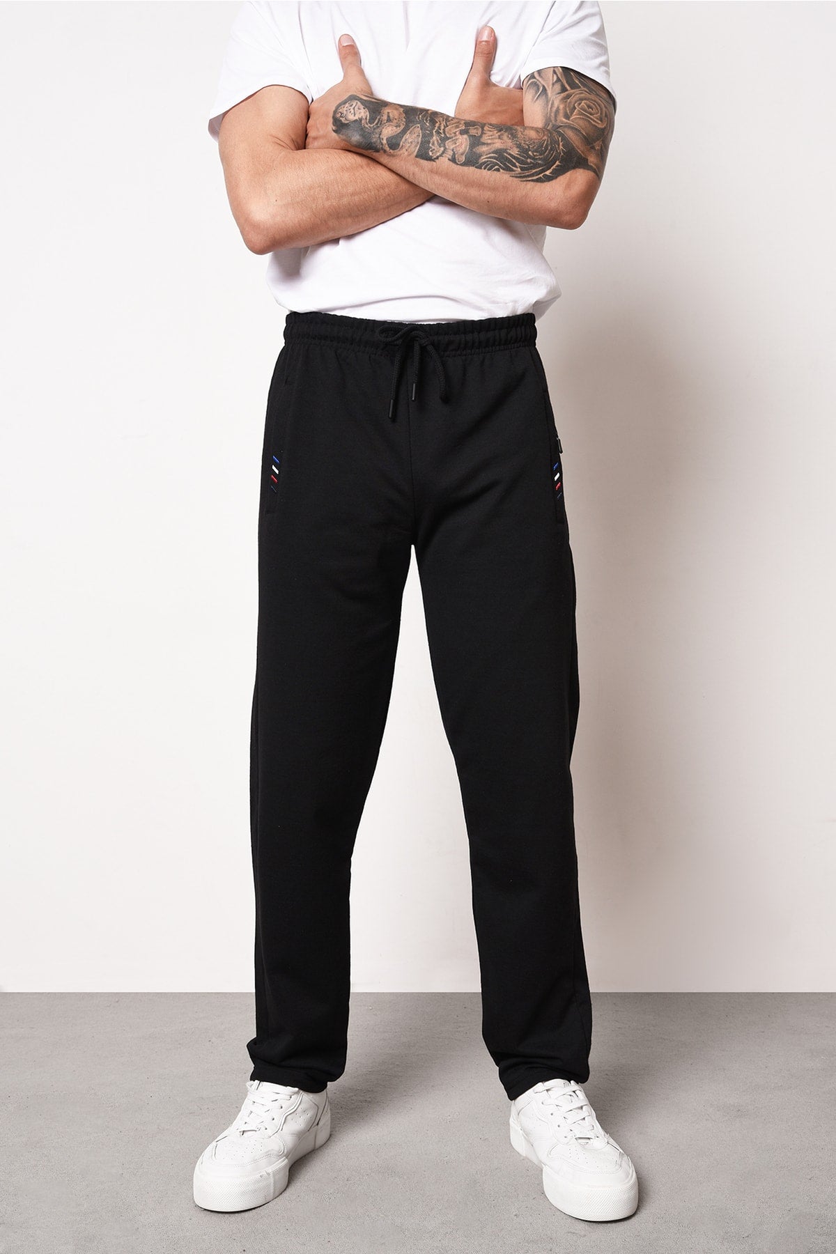 Mtlc045 Black Men'S Zipper Pocket Embroidery Detail Straight Leg Casual Fit Sweatpants
