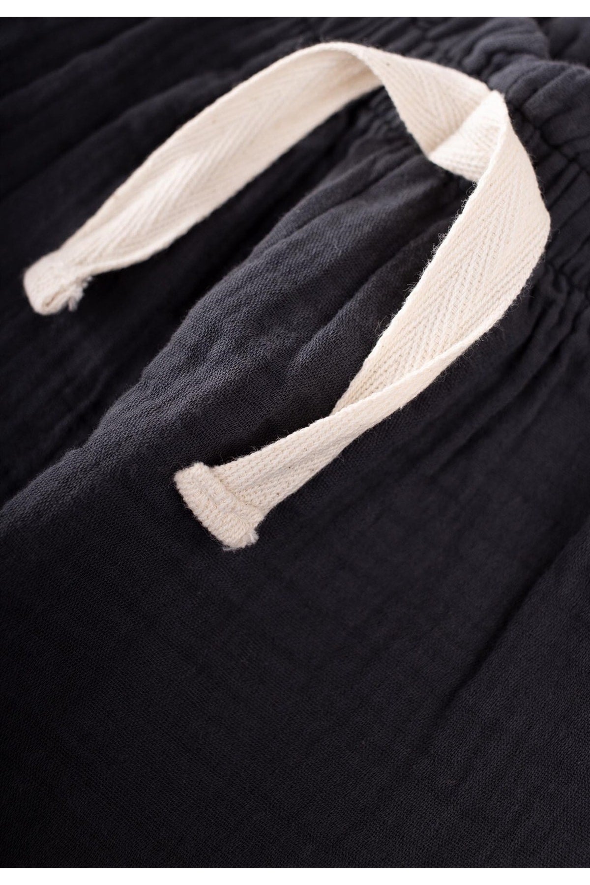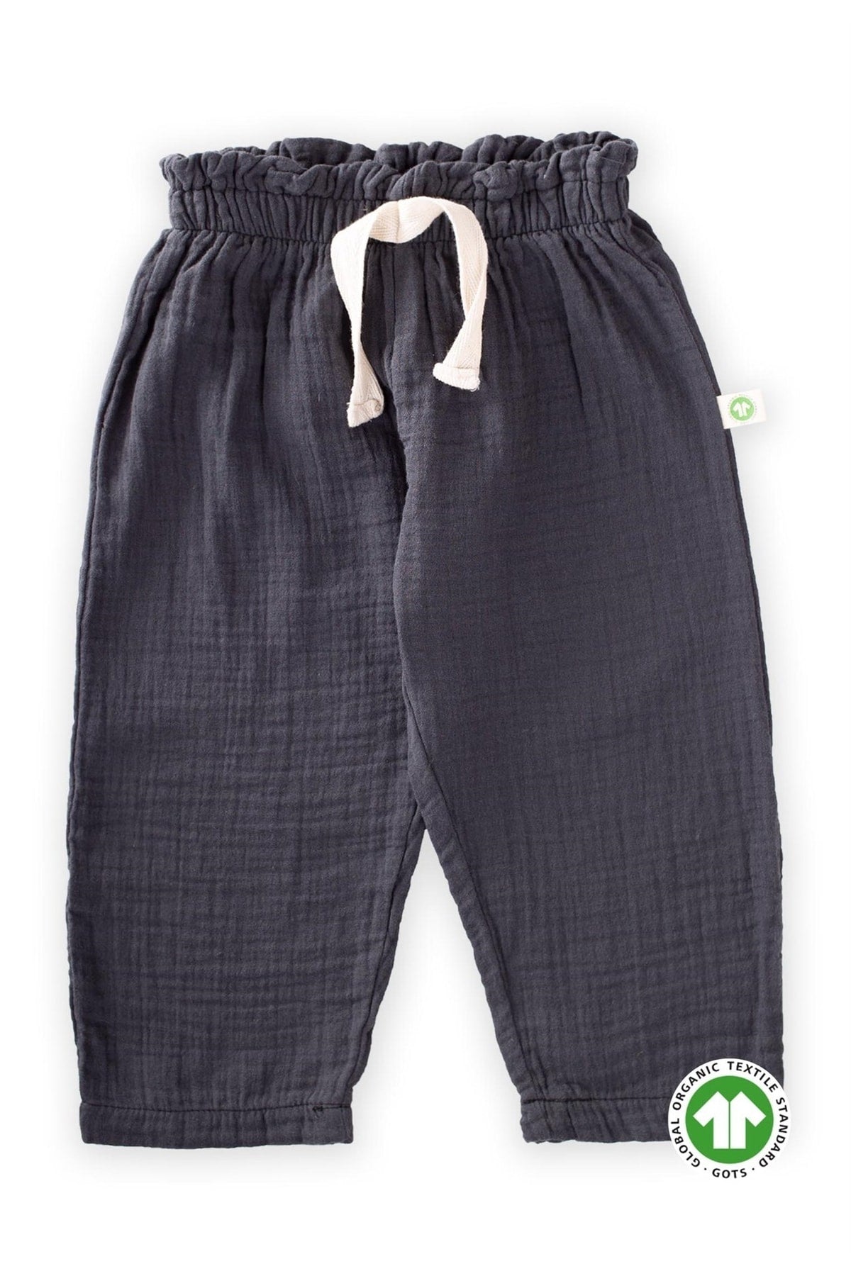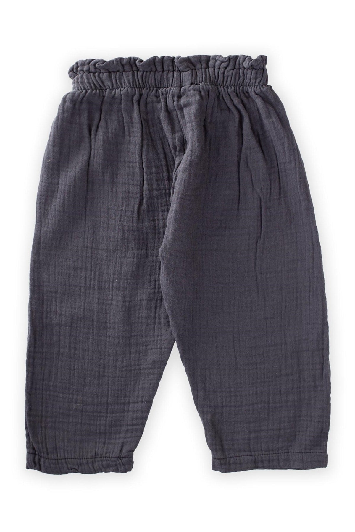 Organic Frilly Waist Wide Cut Muslin Trousers 1-8 Years Anthracite