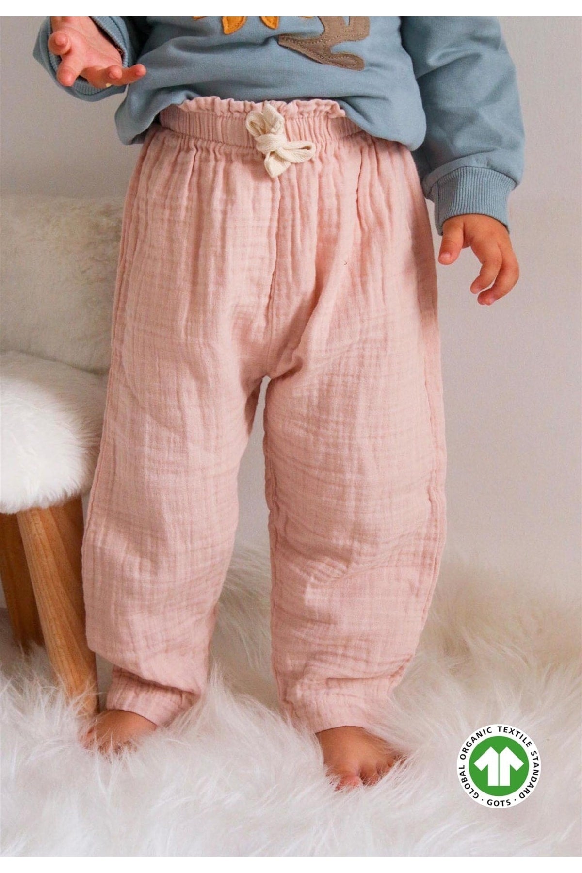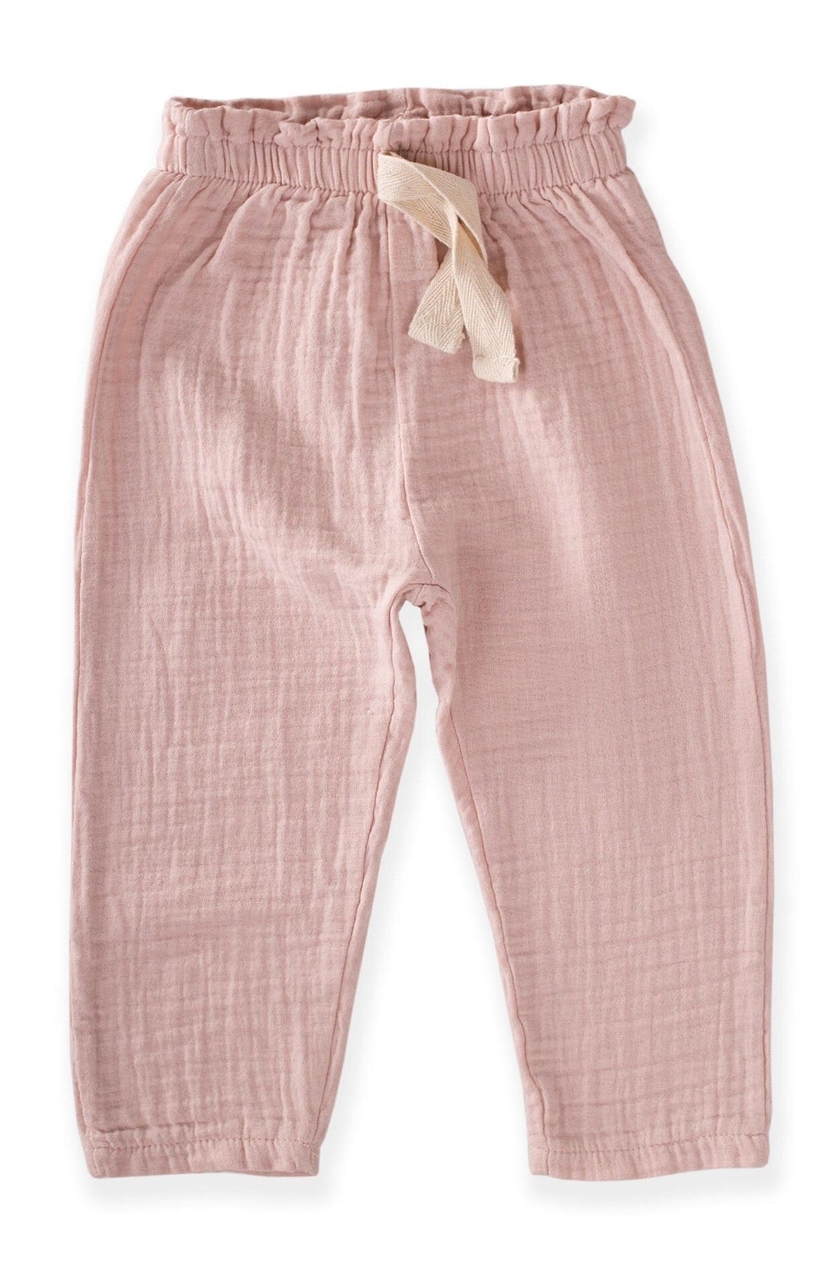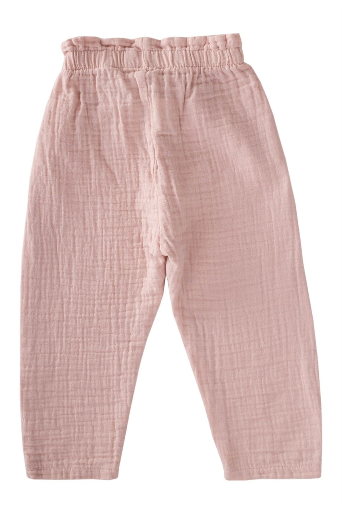 Organic Ruffle Waist Wide Cut Muslin Trousers Ages 1-8 Powder Pink