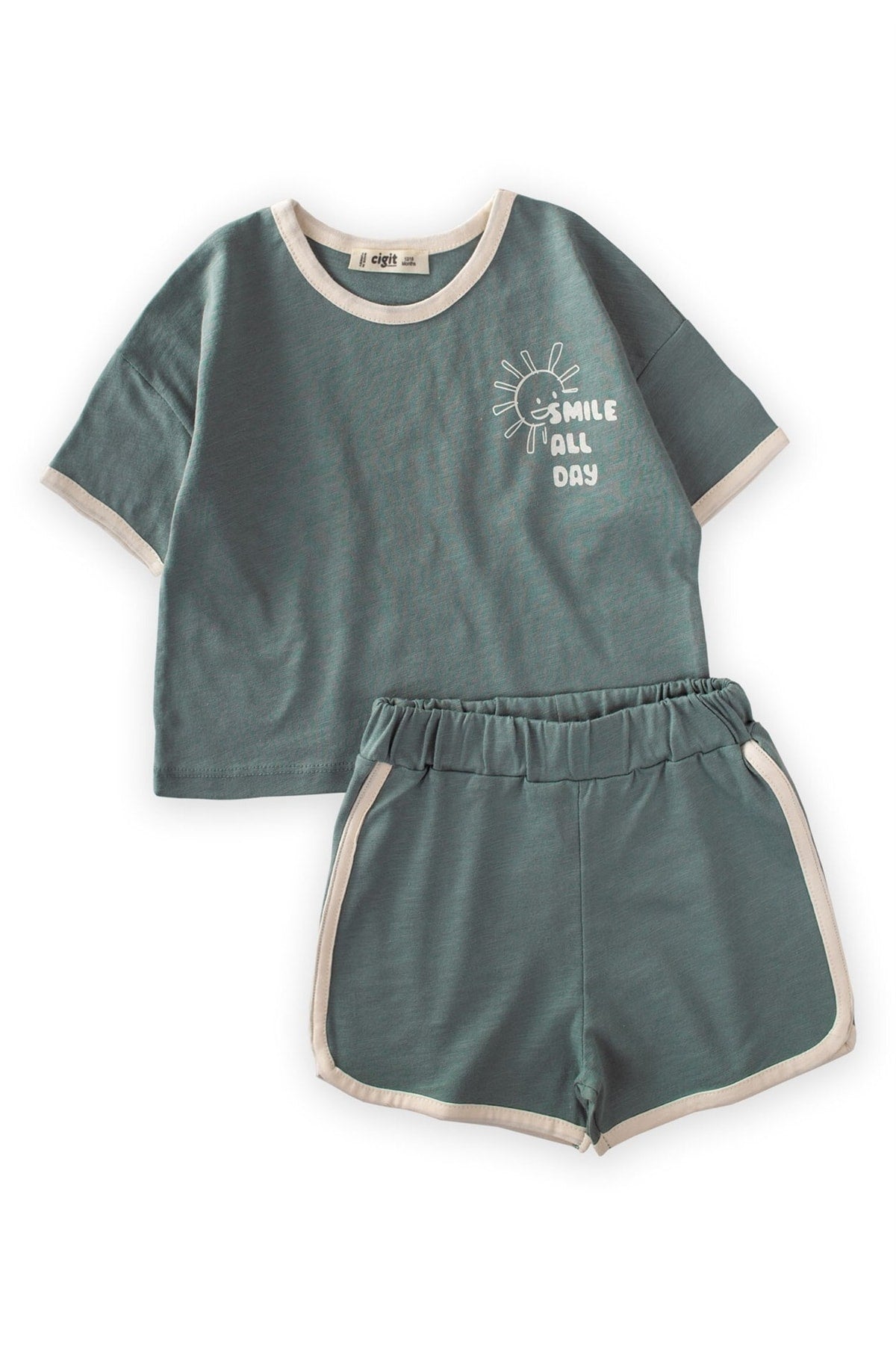 Pile Garnish Oversize Shorts Set 1-7 Ages Green