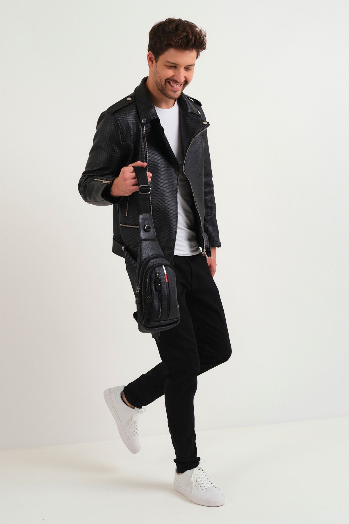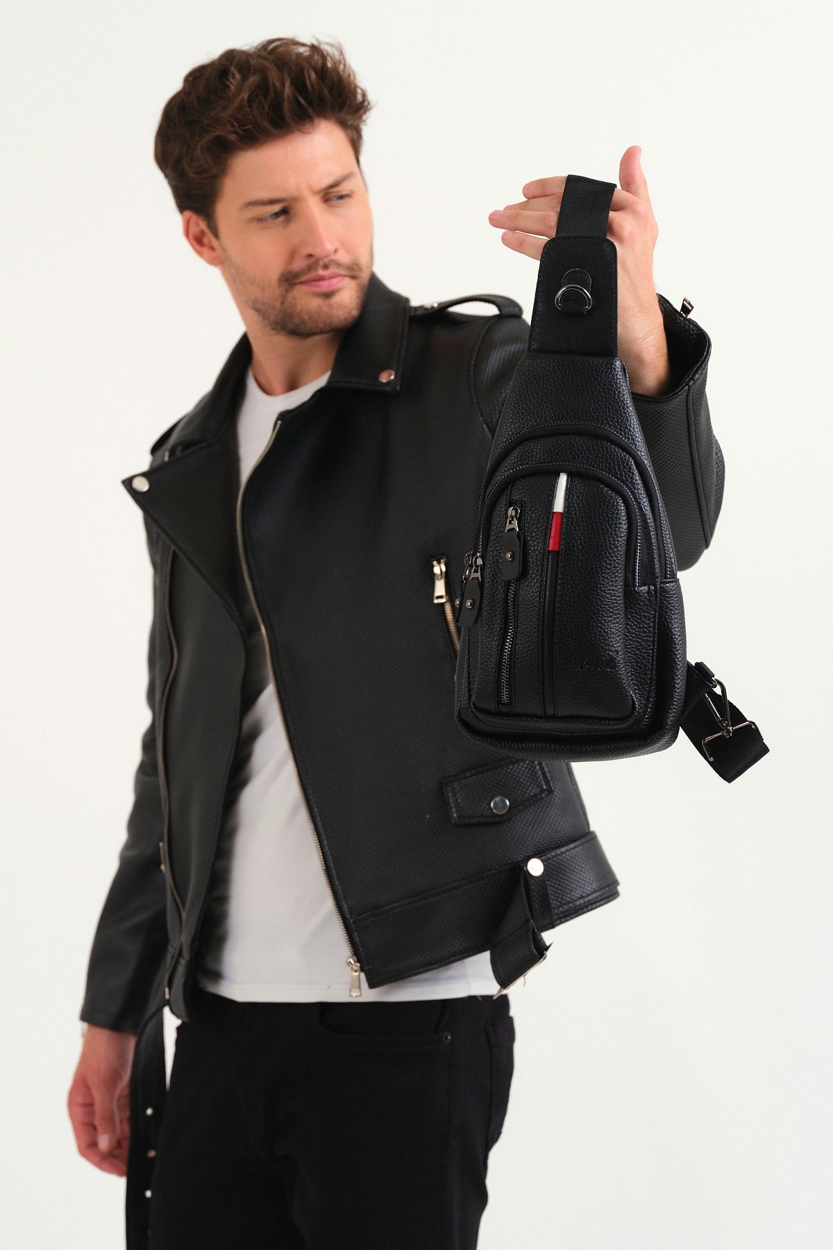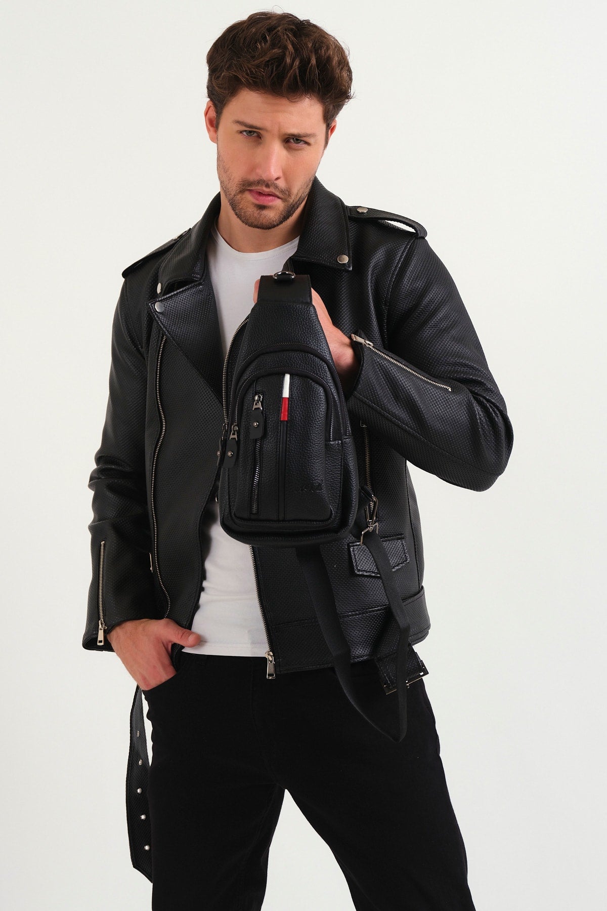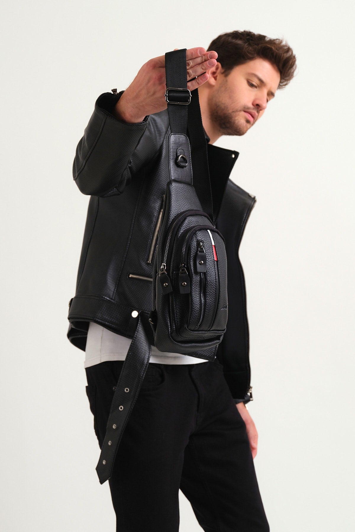 Quality Leather Cross Shoulder And Chest Bag Black With Strap