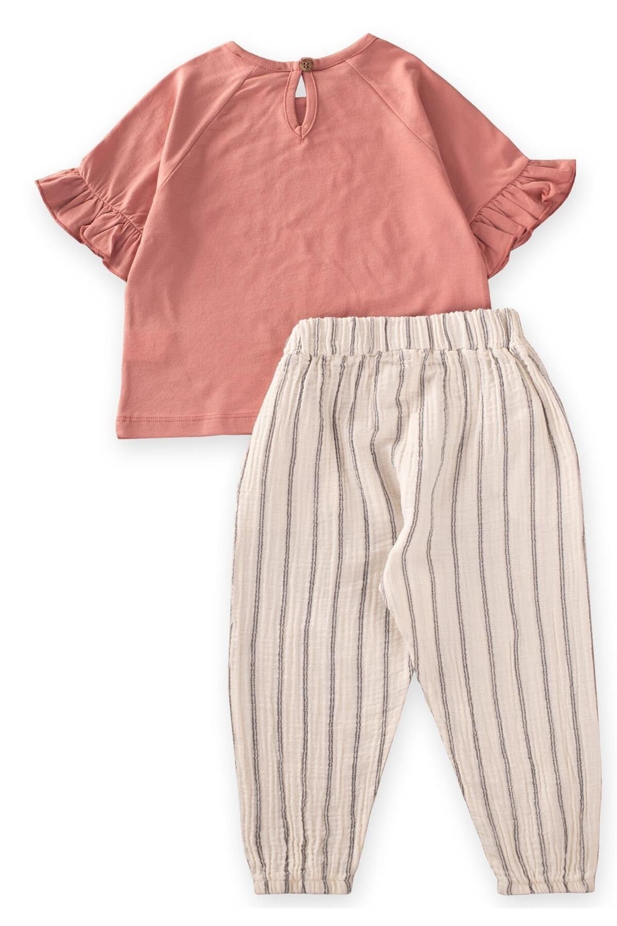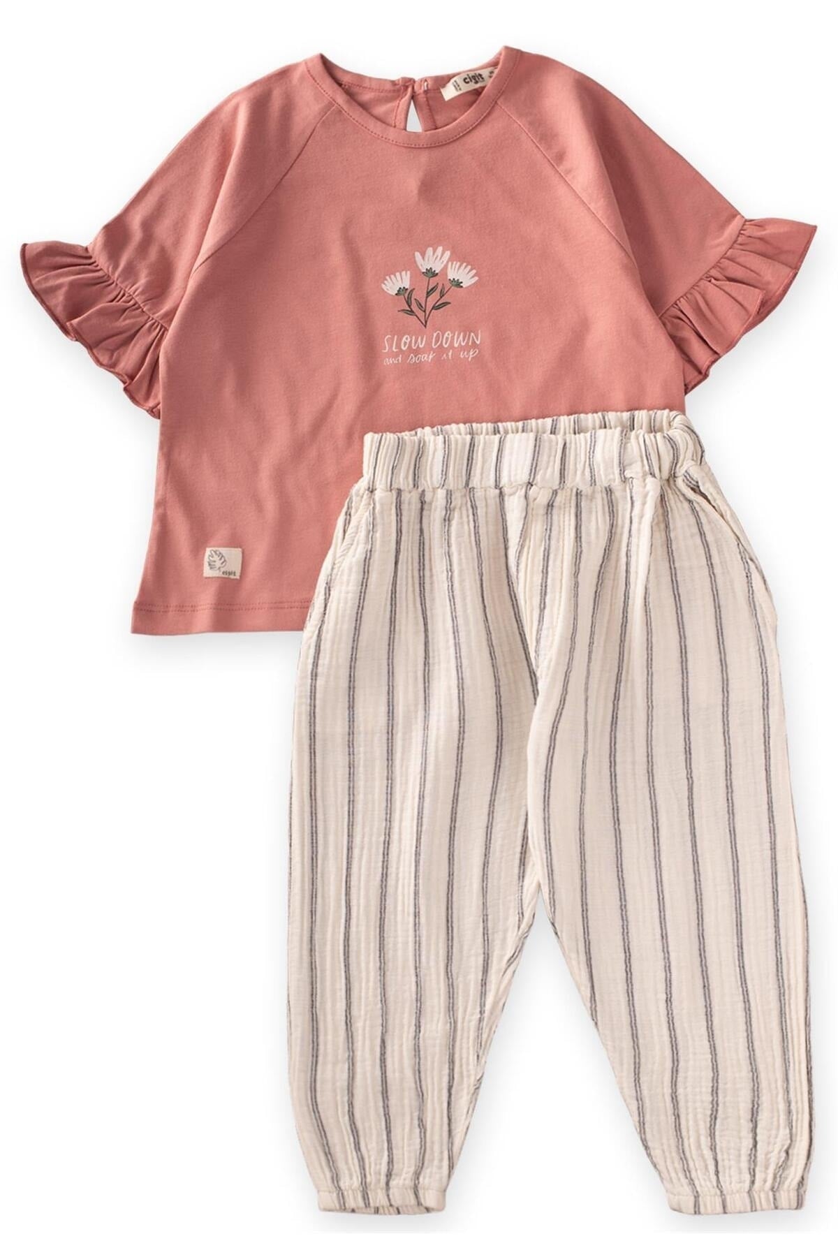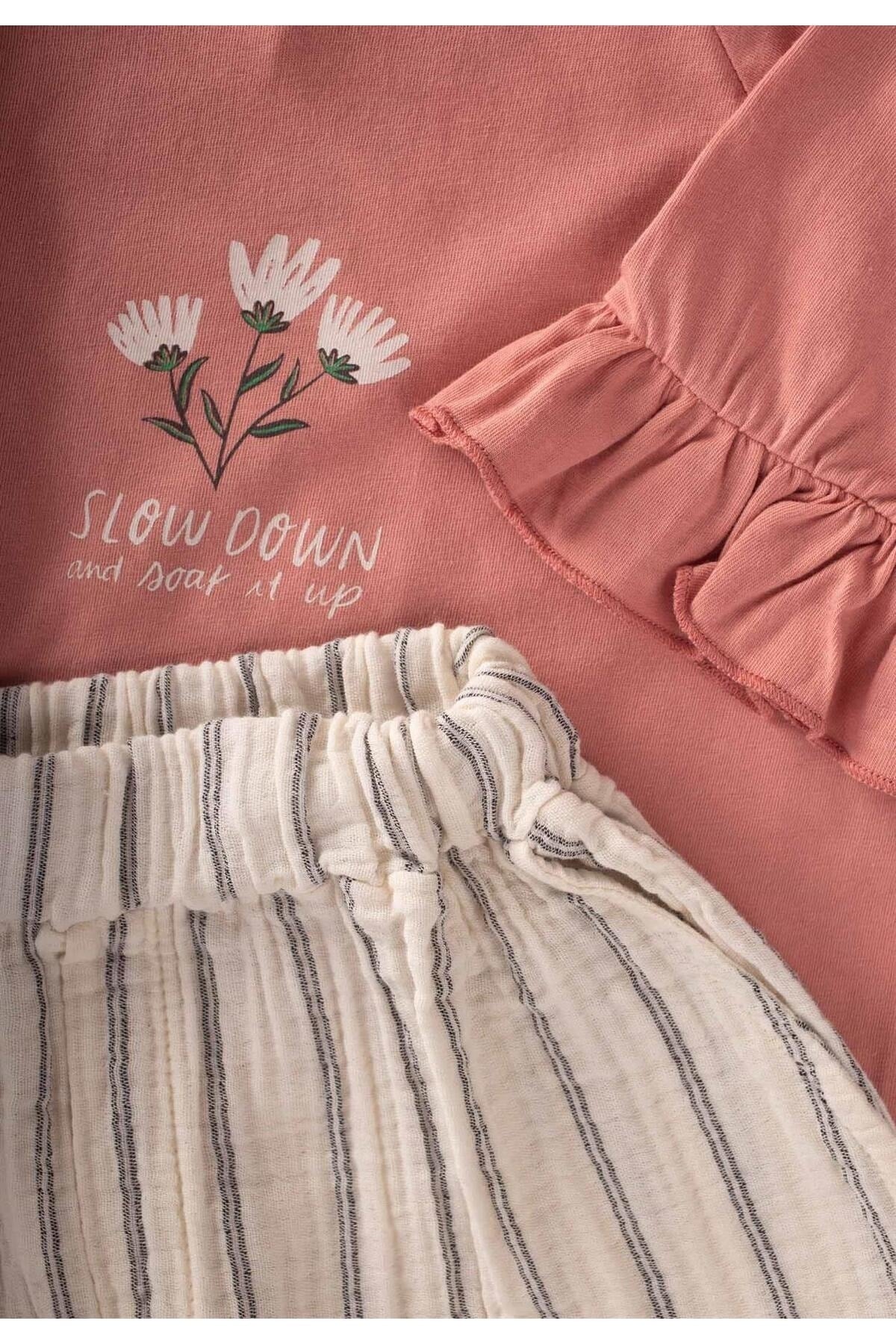 Slow Down Floral Printed Muslin Striped Trouser Suit Age 2-7 Tile