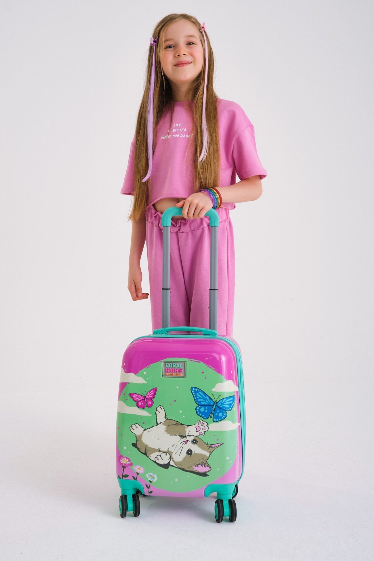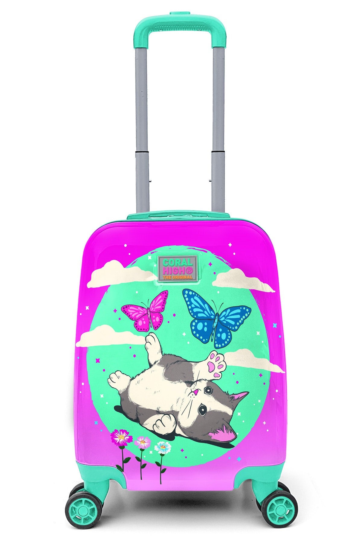 Water Green Pink Cat Patterned Child Suitcase 16709