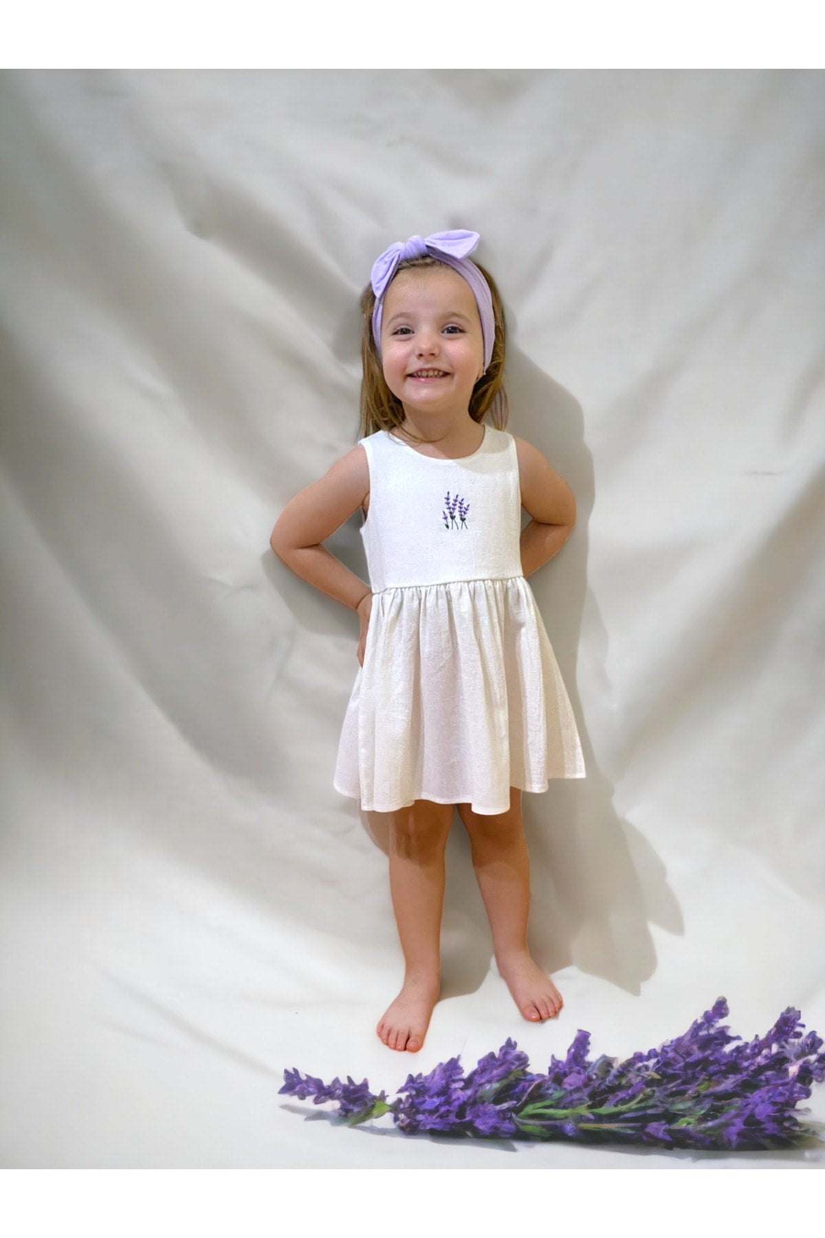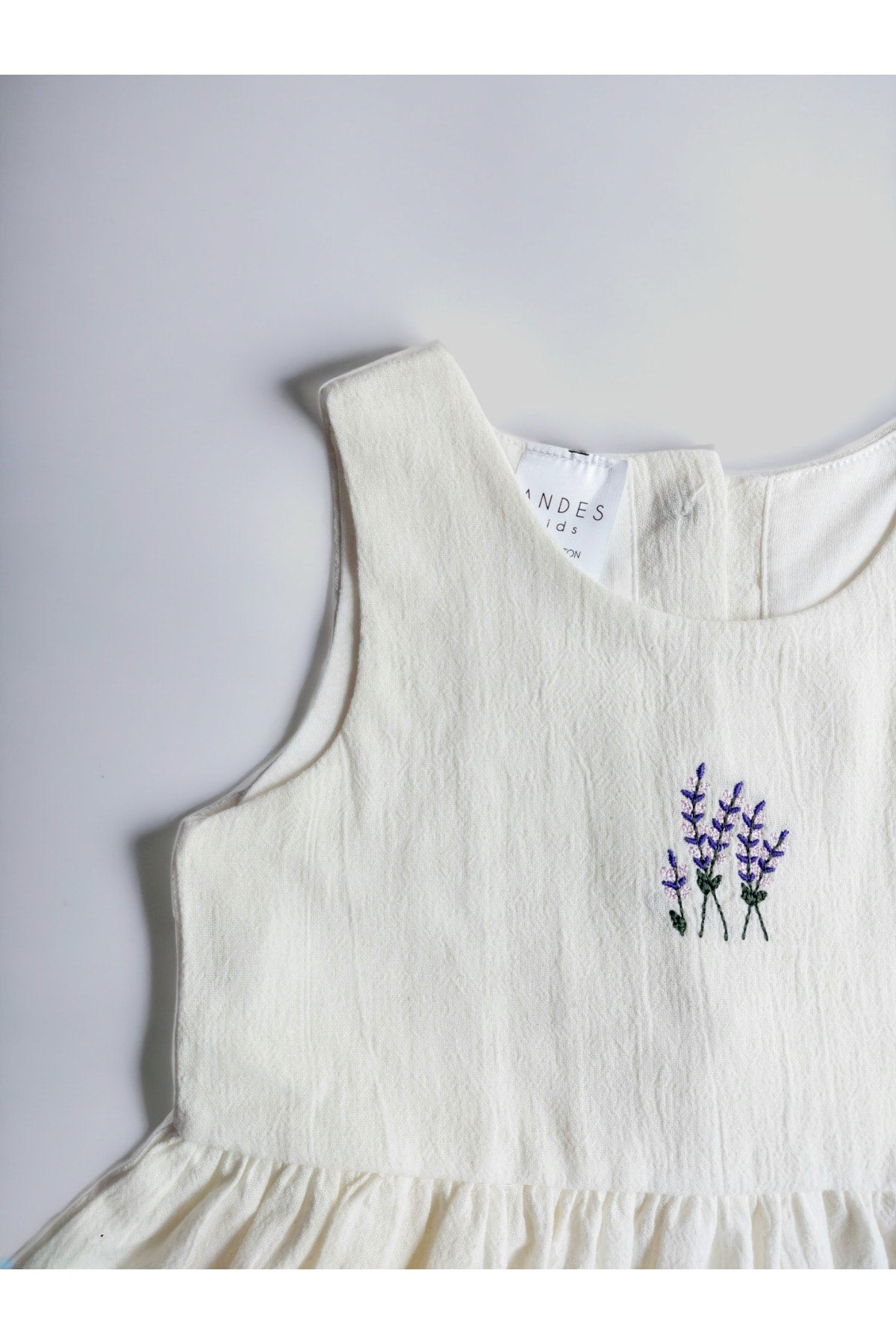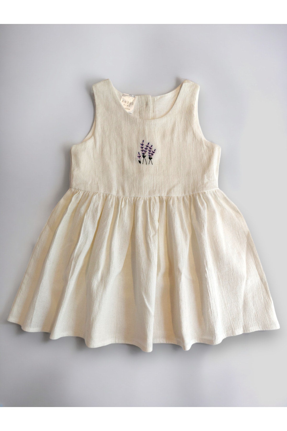100% Cotton Organic Lavender Embroidery Girl Dress 1-5 Years